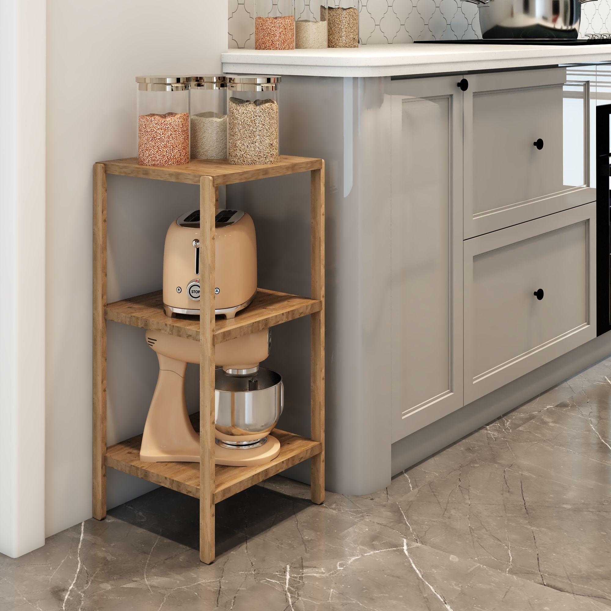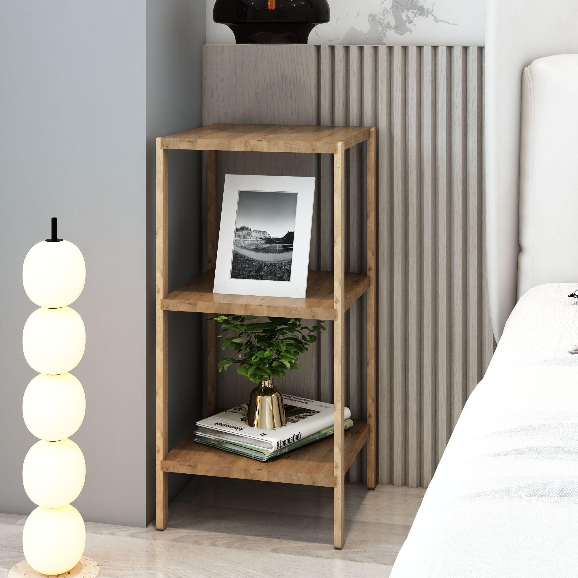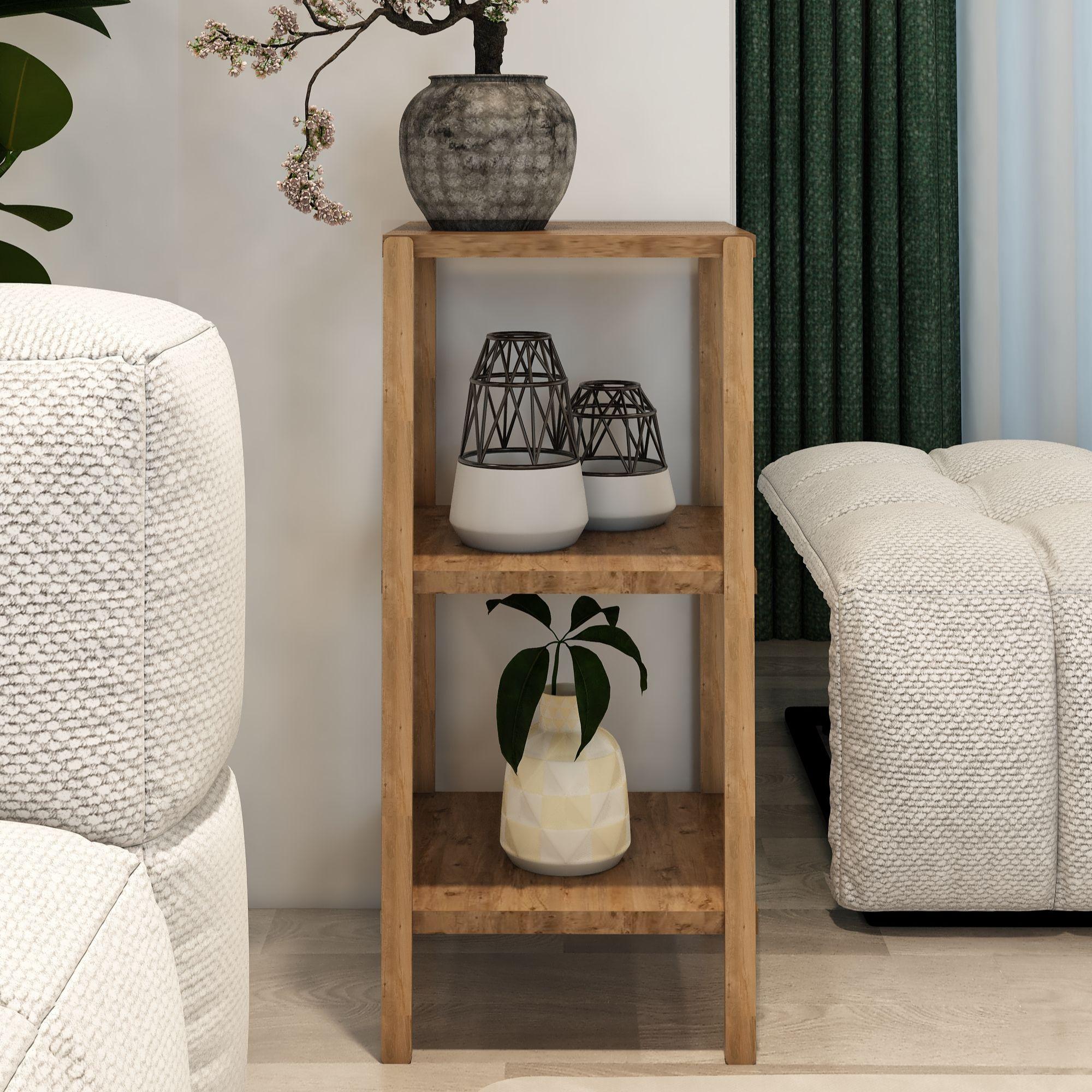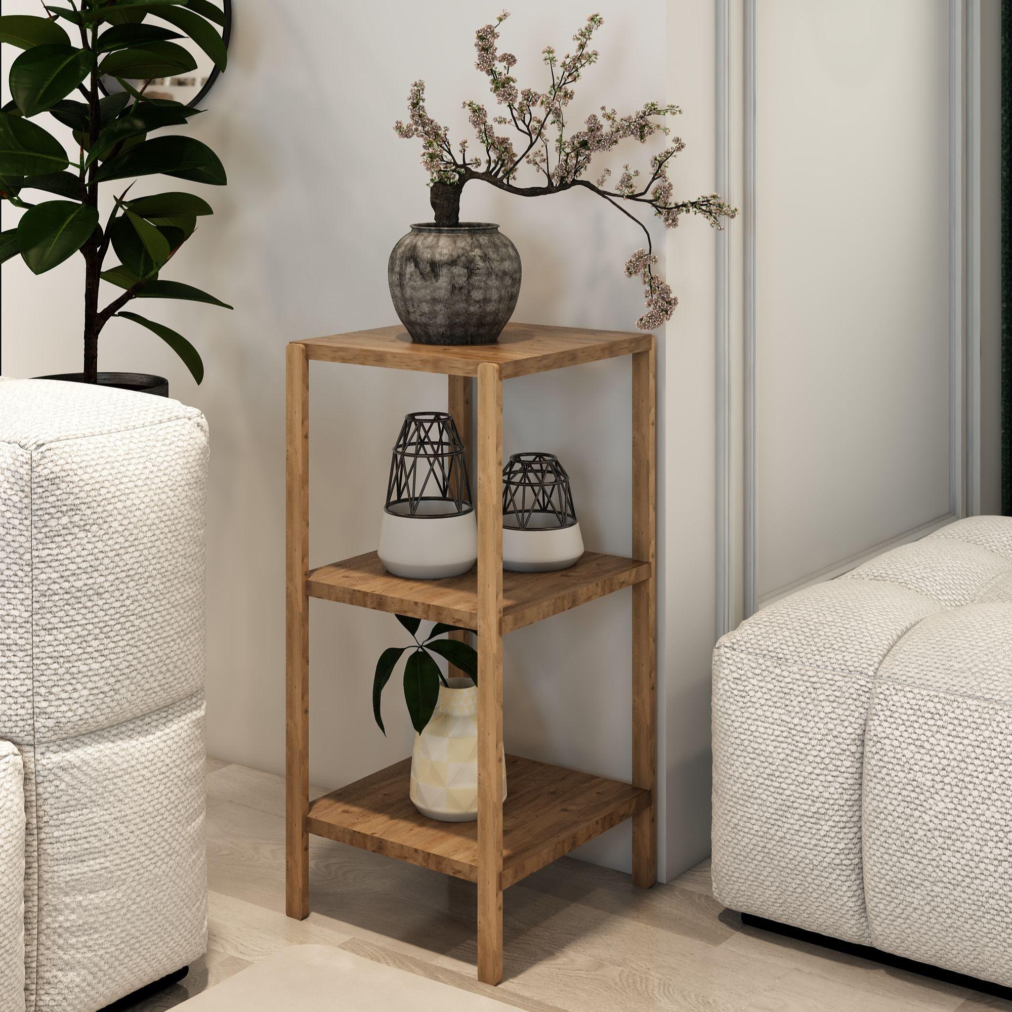 Aden 3 Katlı Atlantik Çam Ahşap Köşe Sehpası / Çok Amaçlı Dekoratif Raf, Saksı Standı, Çiçeklik / Mutfak Rafı, Baharatlık / Banyo Rafı