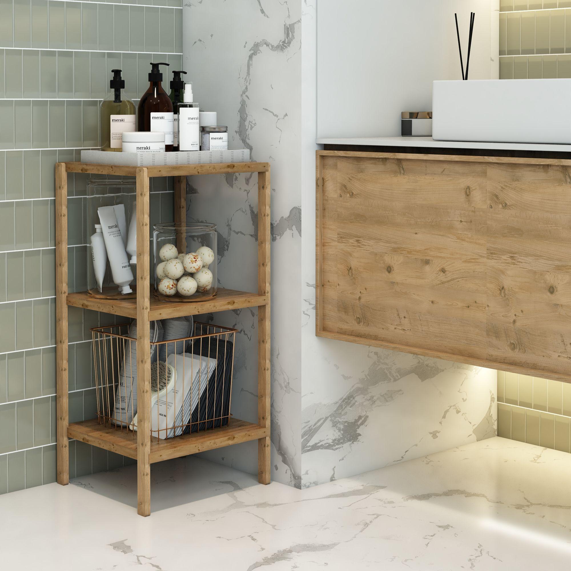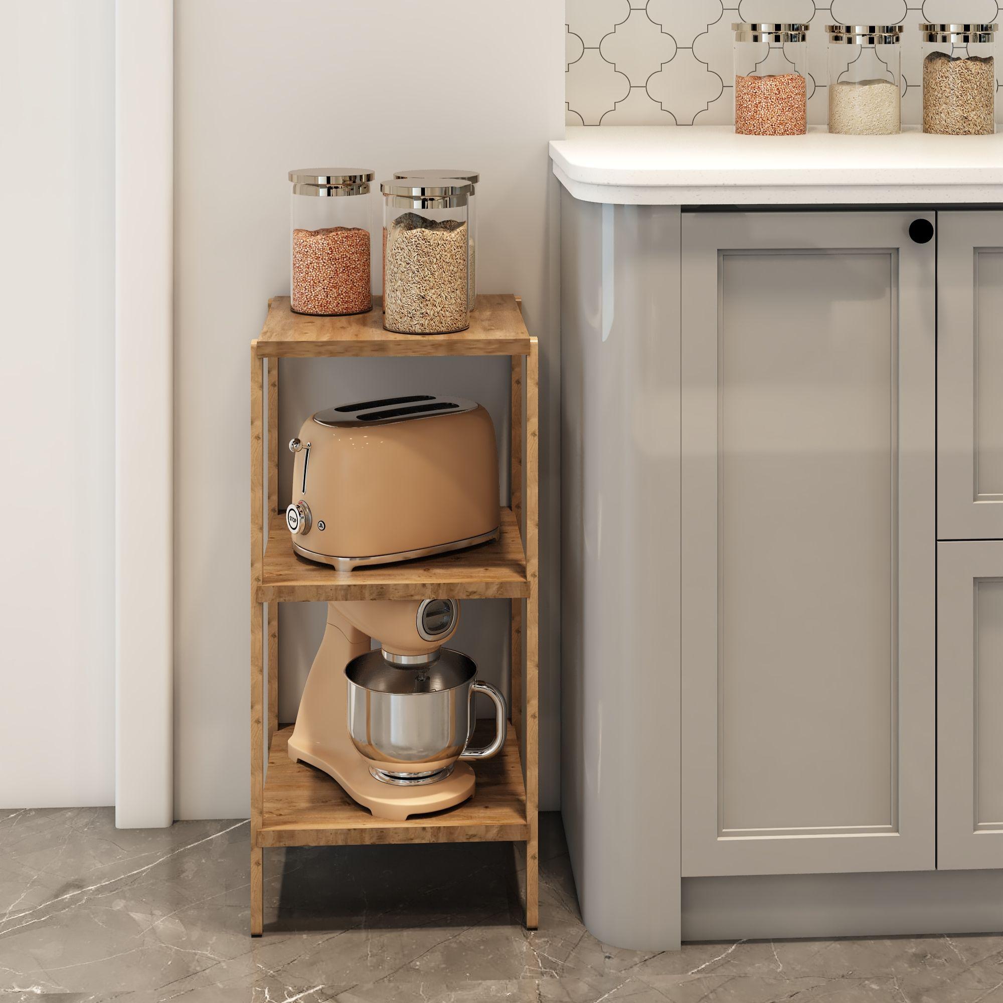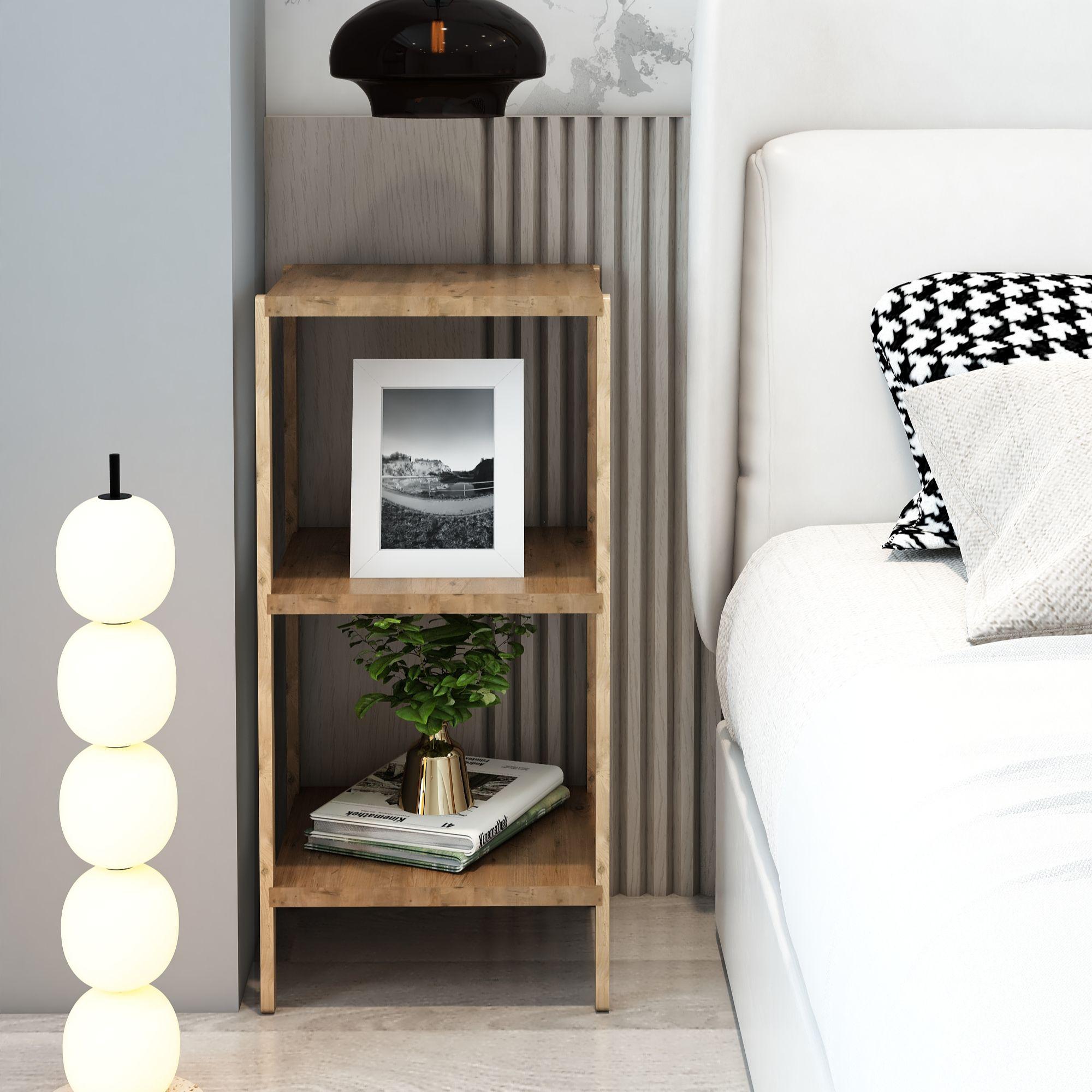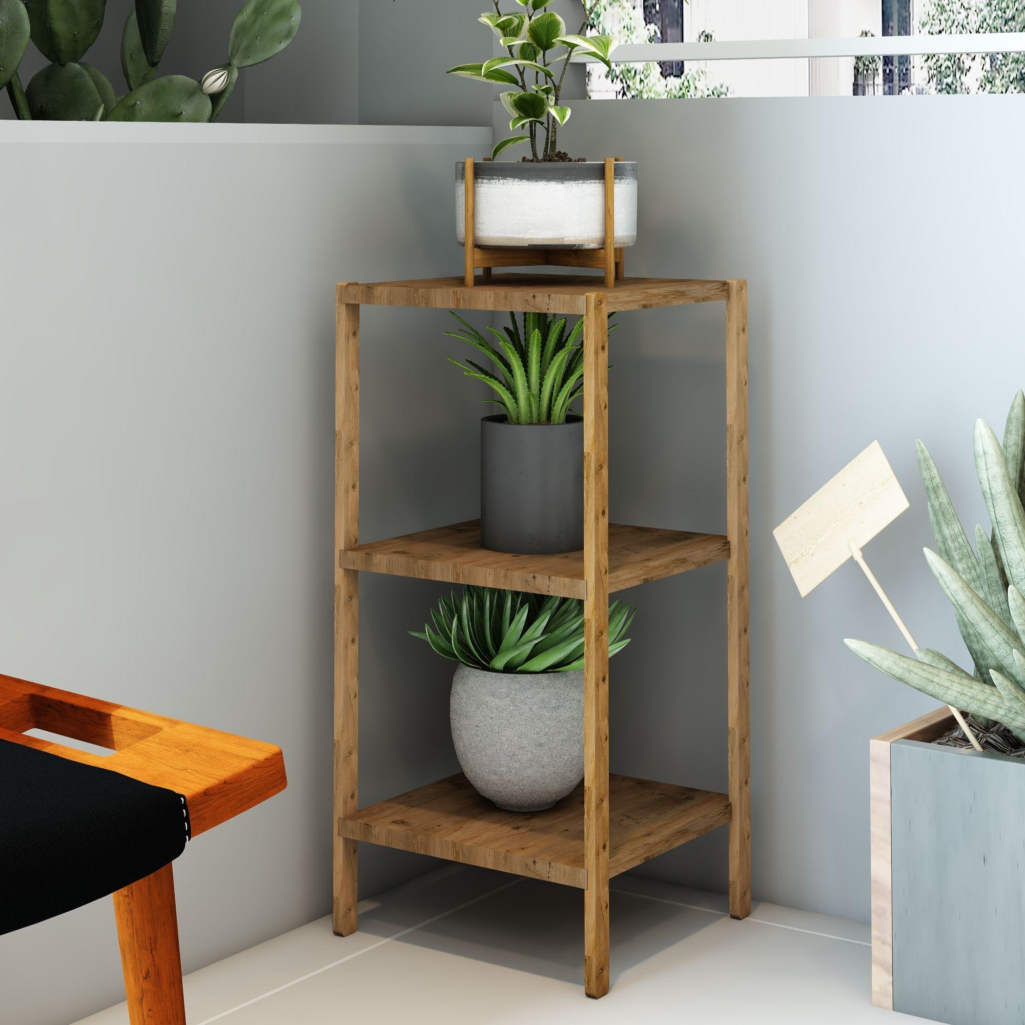 Aden 3 Katlı Atlantik Çam Ahşap Köşe Sehpası / Çok Amaçlı Dekoratif Raf, Saksı Standı, Çiçeklik / Mutfak Rafı, Baharatlık / Banyo Rafı