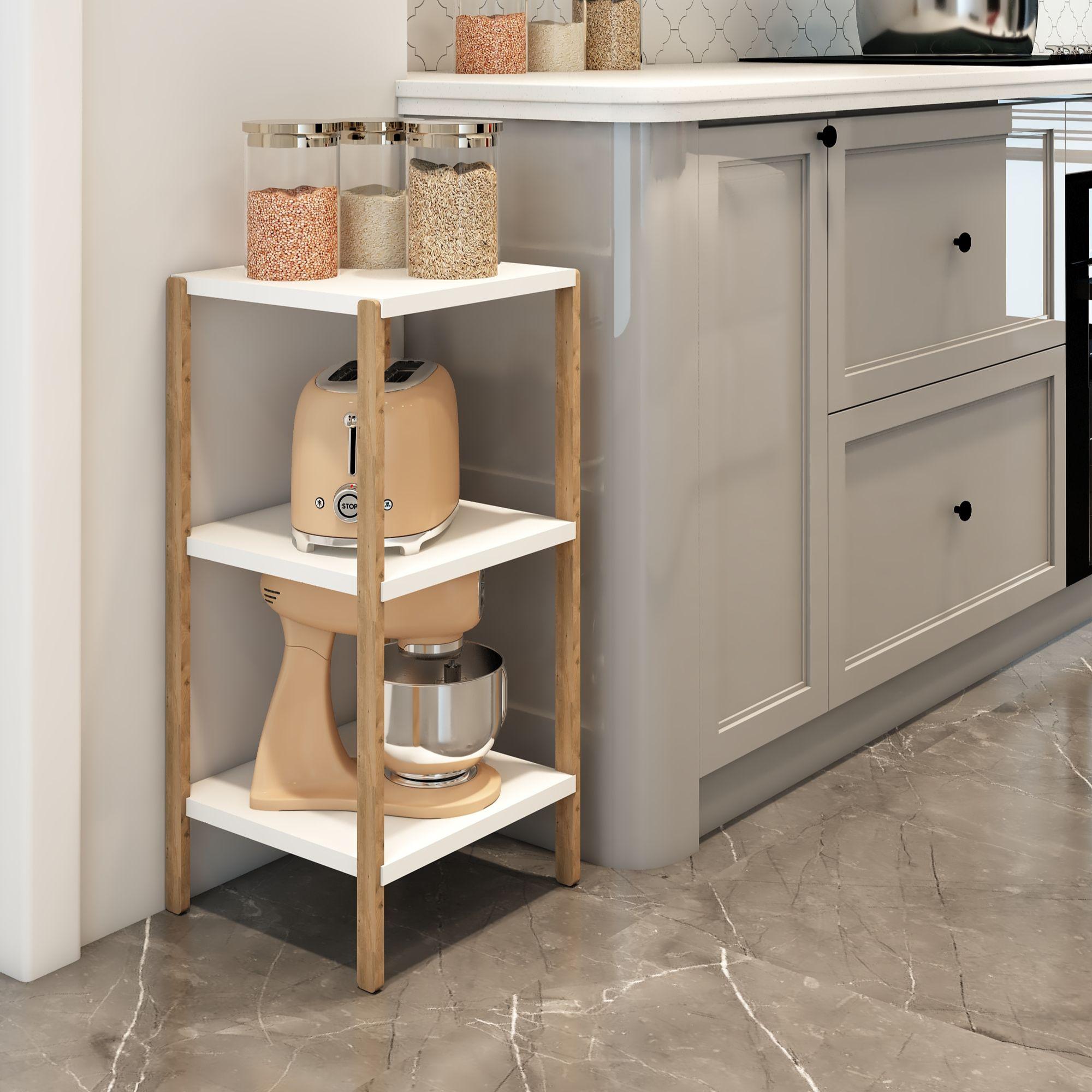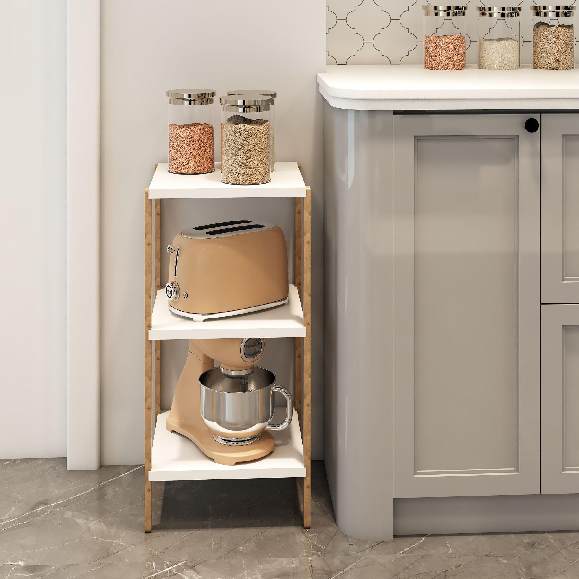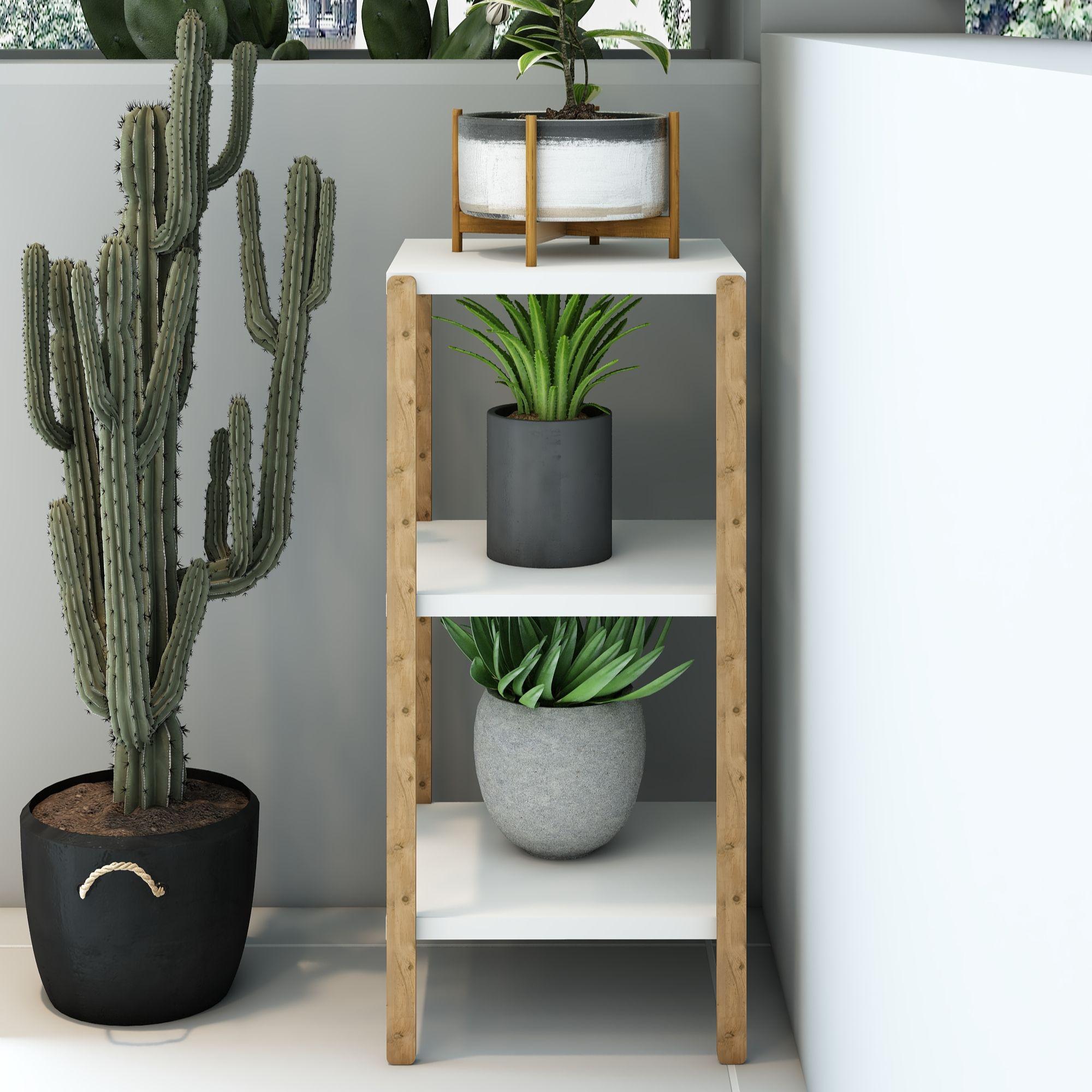 Aden 3 Katlı Beyaz Ahşap Köşe Sehpası / Çok Amaçlı Dekoratif Raf, Saksı Standı, Çiçeklik / Mutfak Rafı, Baharatlık / Banyo Rafı