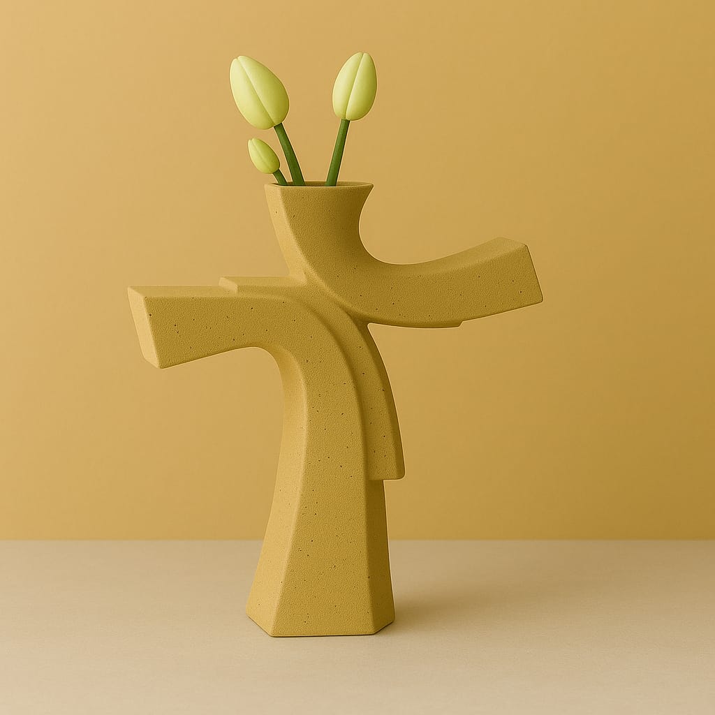 Modern dekorasyonun en özgün parçalarından biri olan beton asimetrik vazo, el işçiliğiyle üretilmiş özel bir tasarım objesidir. Minimal, heykelsi formu sayesinde hem modern hem de sanatsal yaşam alanlarına kusursuz bir uyum sağlar. Mat dokusu, sade görünümü ve güçlü duruşuyla masa, raf, komodin veya salon köşelerinde dekoratif bir vurgu oluşturur.