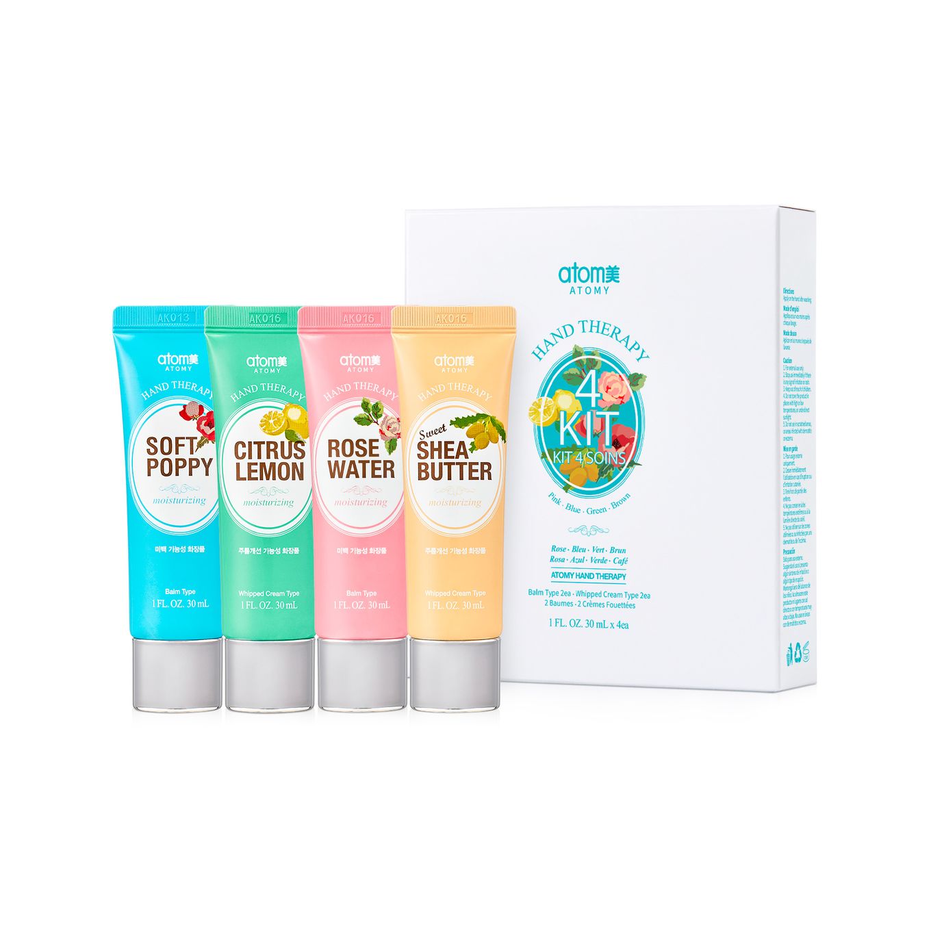 Atomy Hand Therapy 4'lü El Kremi Seti, ellerinizi beslemek ve korumak için özel olarak formüle edilmiş dört eşsiz el kreminden oluşmaktadır. Günlük yaşantımızda maruz kaldığımız zararlı etkenler, soğuk hava, su ile sık teması gibi durumlar, ellerimizin kurumasına ve çatlamasına sebep olabilir. Bu nedenle, Atomy'nin el kremi seti temiz, nemli ve sağlıklı ellere ulaşmanıza yardımcı olunmak amacıyla geliştirilmiştir.