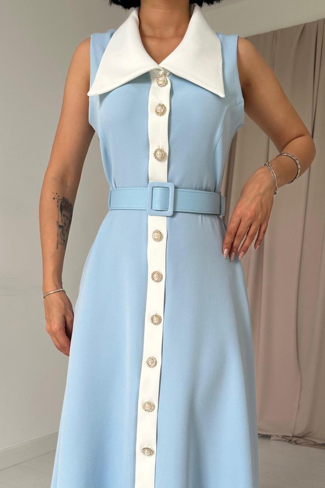 Bebe Mavi Geniş Yakalı Halter Kollu Elbise