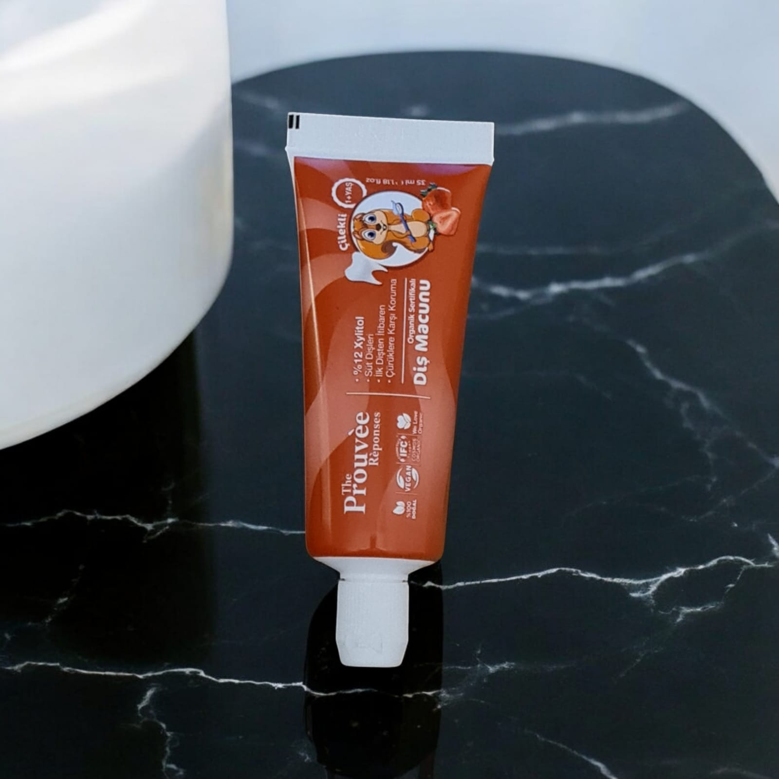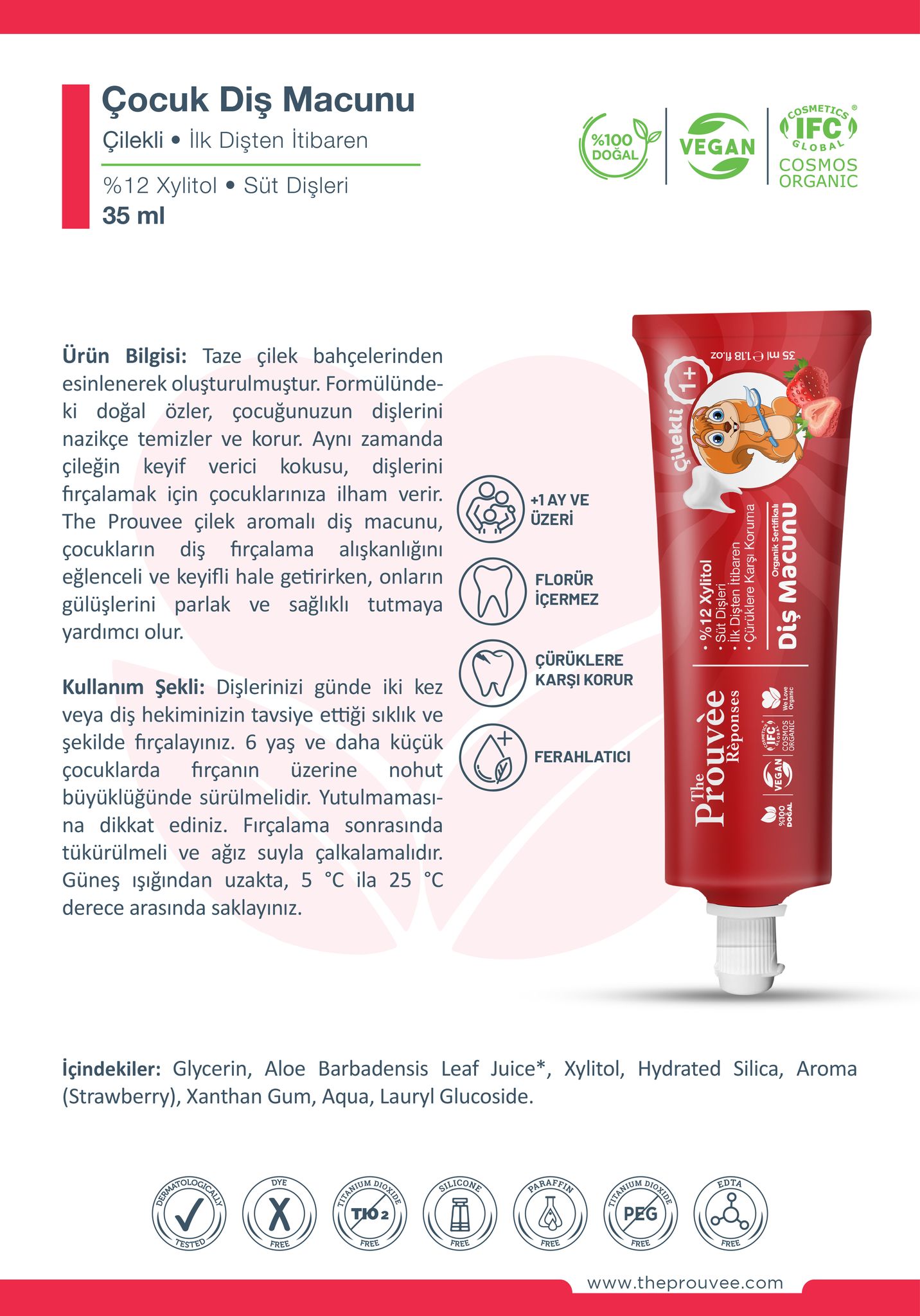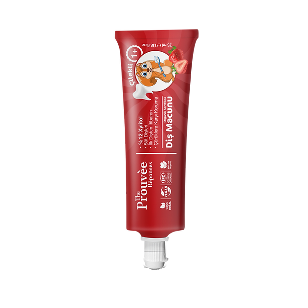 The Prouvee Çilek aromalı diş macunu, çocukların diş fırçalama alışkanlığını eğlenceli ve keyifli