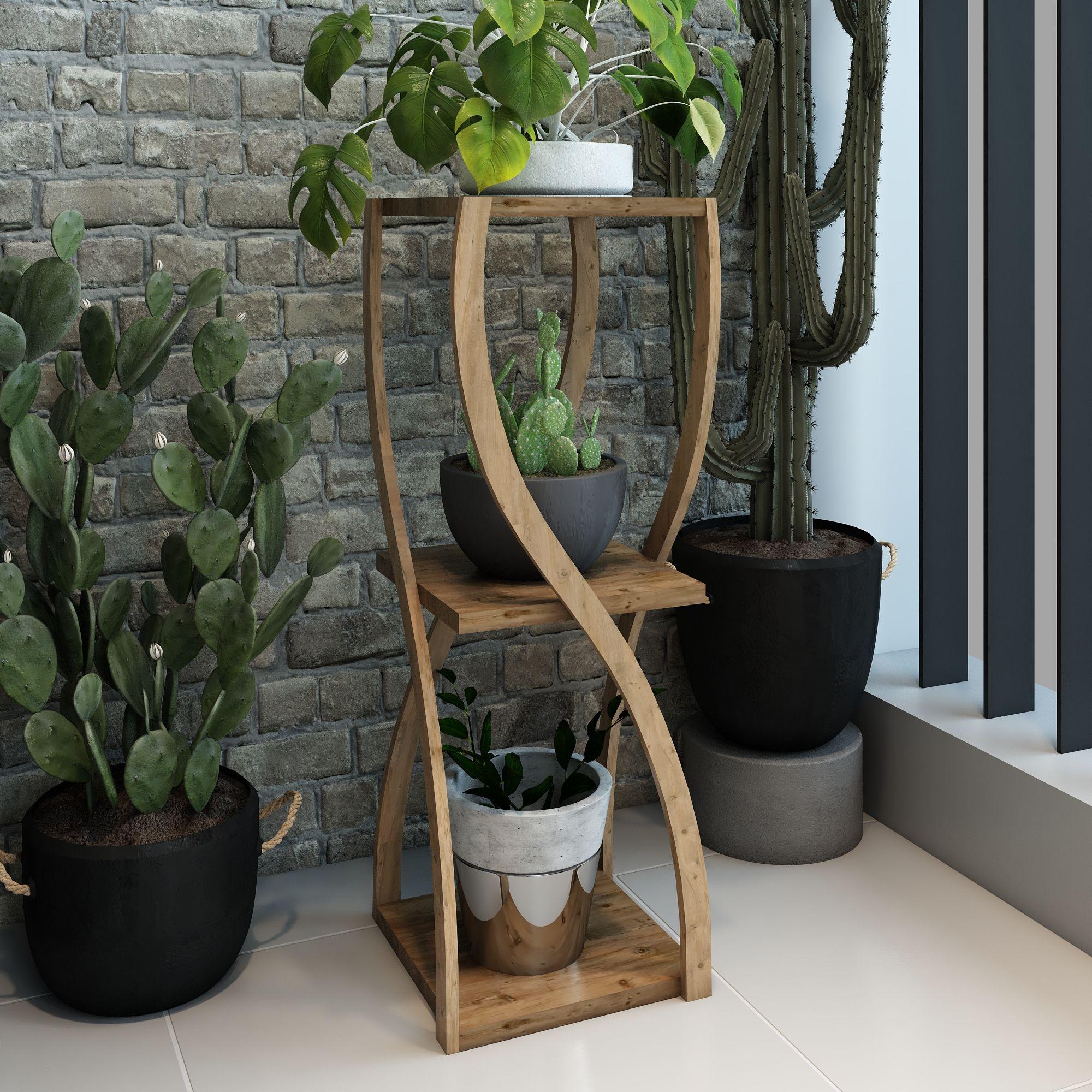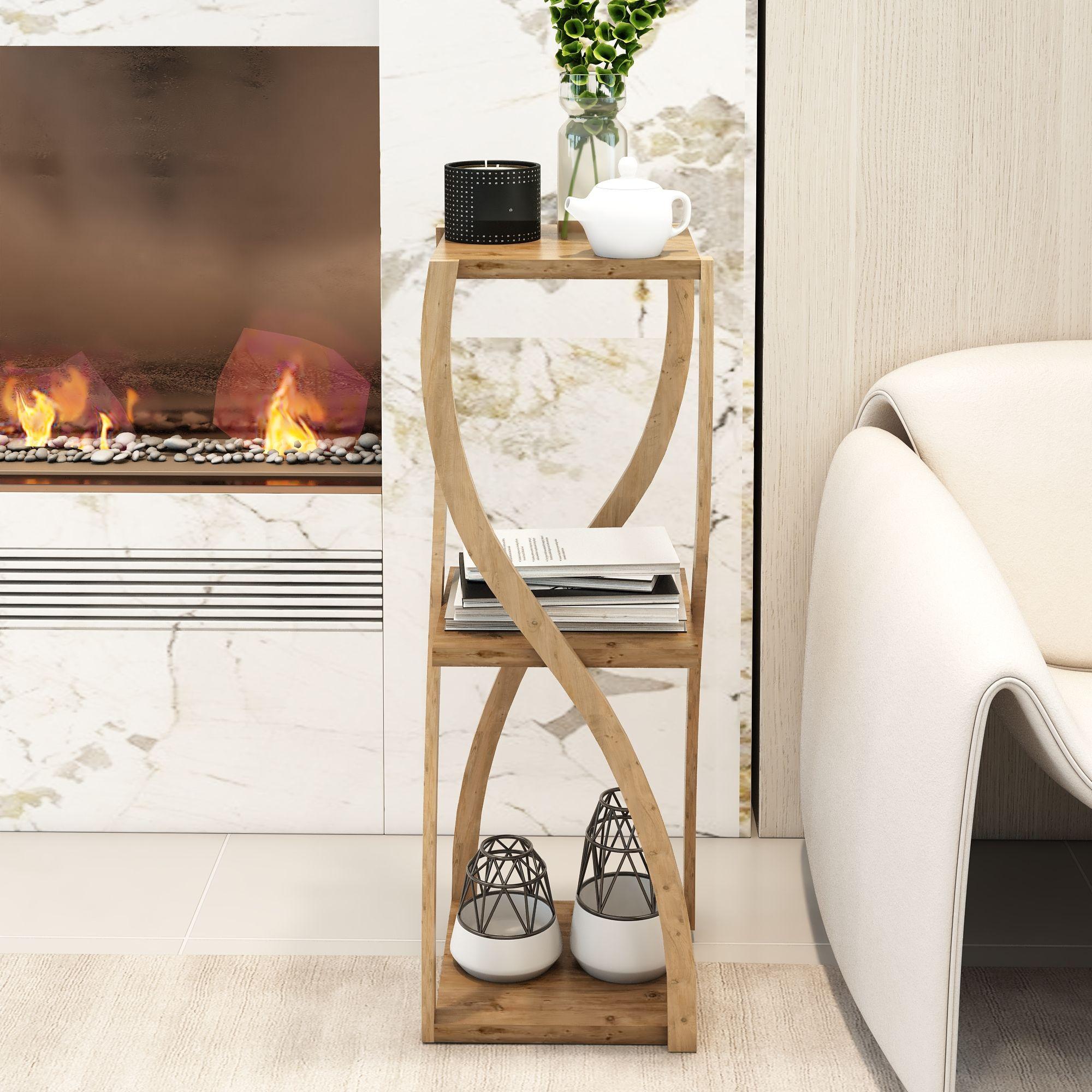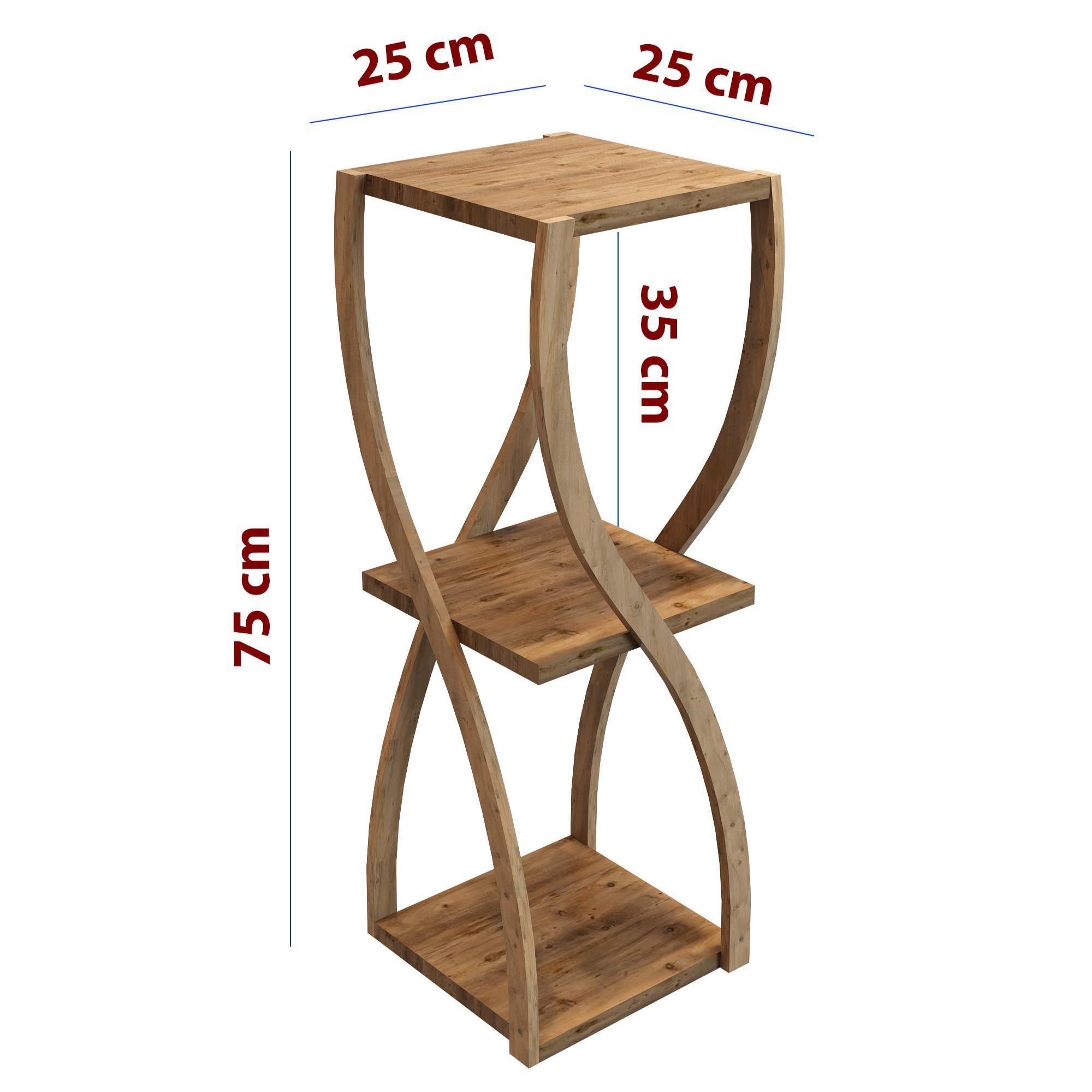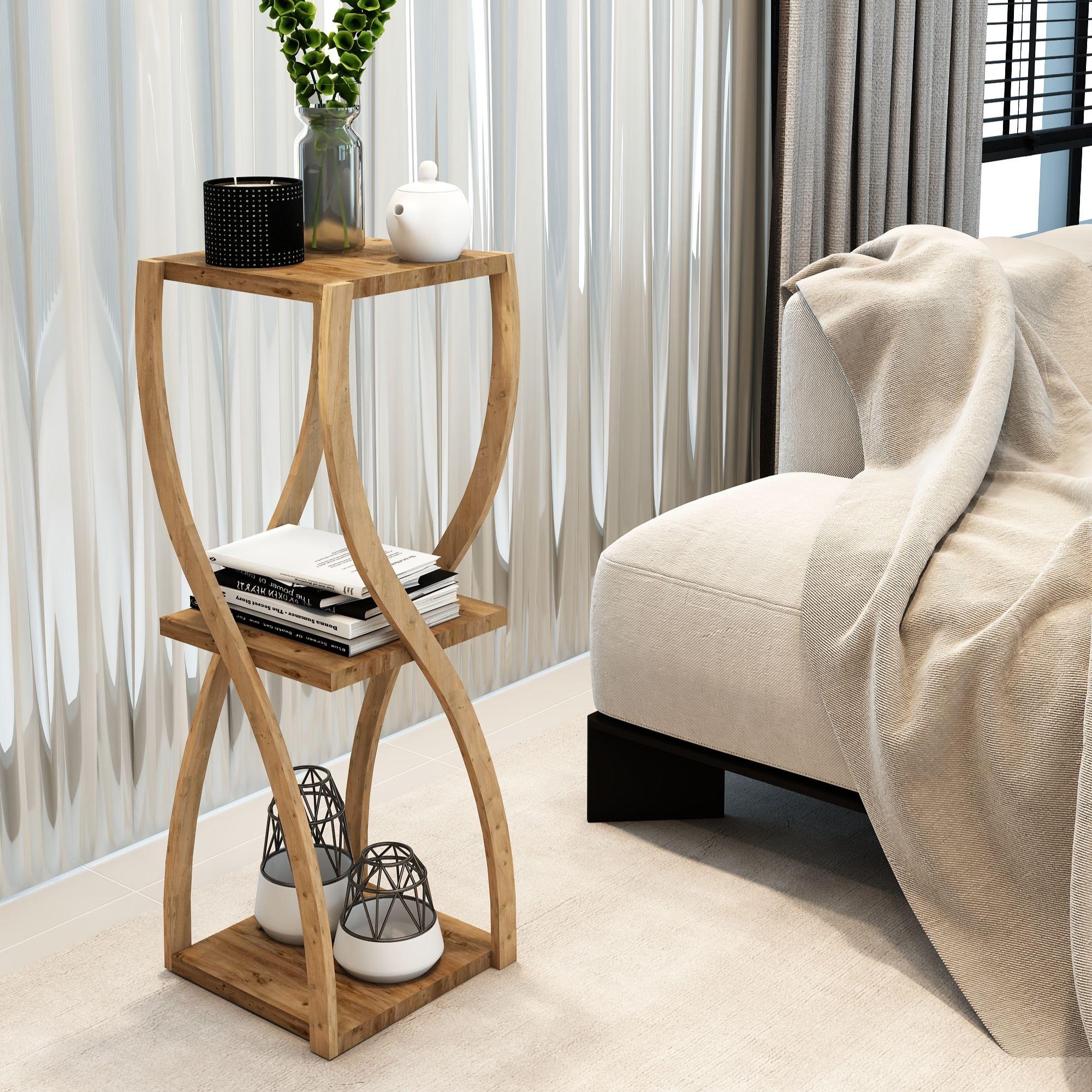 Bukle Atlantik Çam 3 Katlı Ahşap Sehpa / Dekoratif & Çok Amaçlı Kullanım