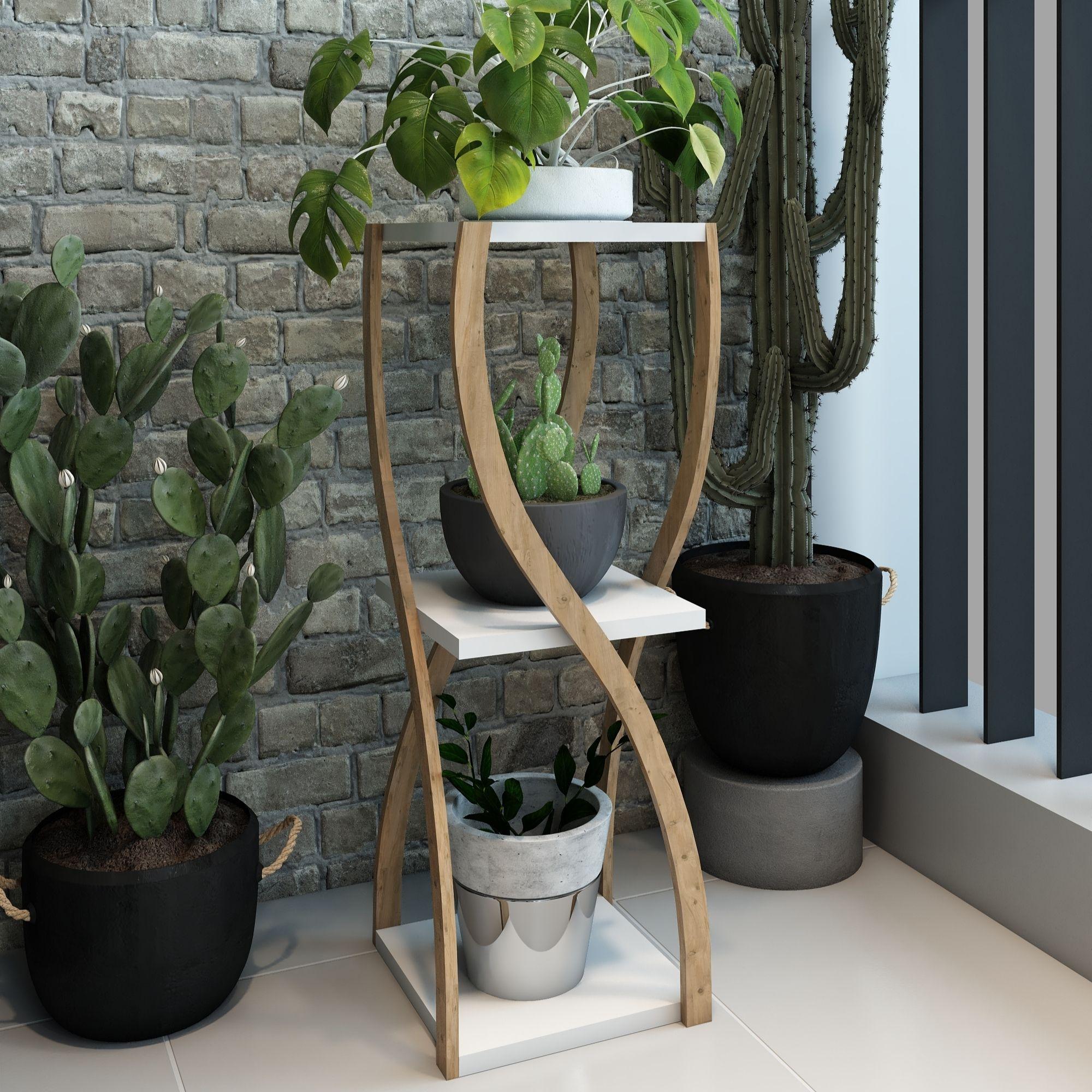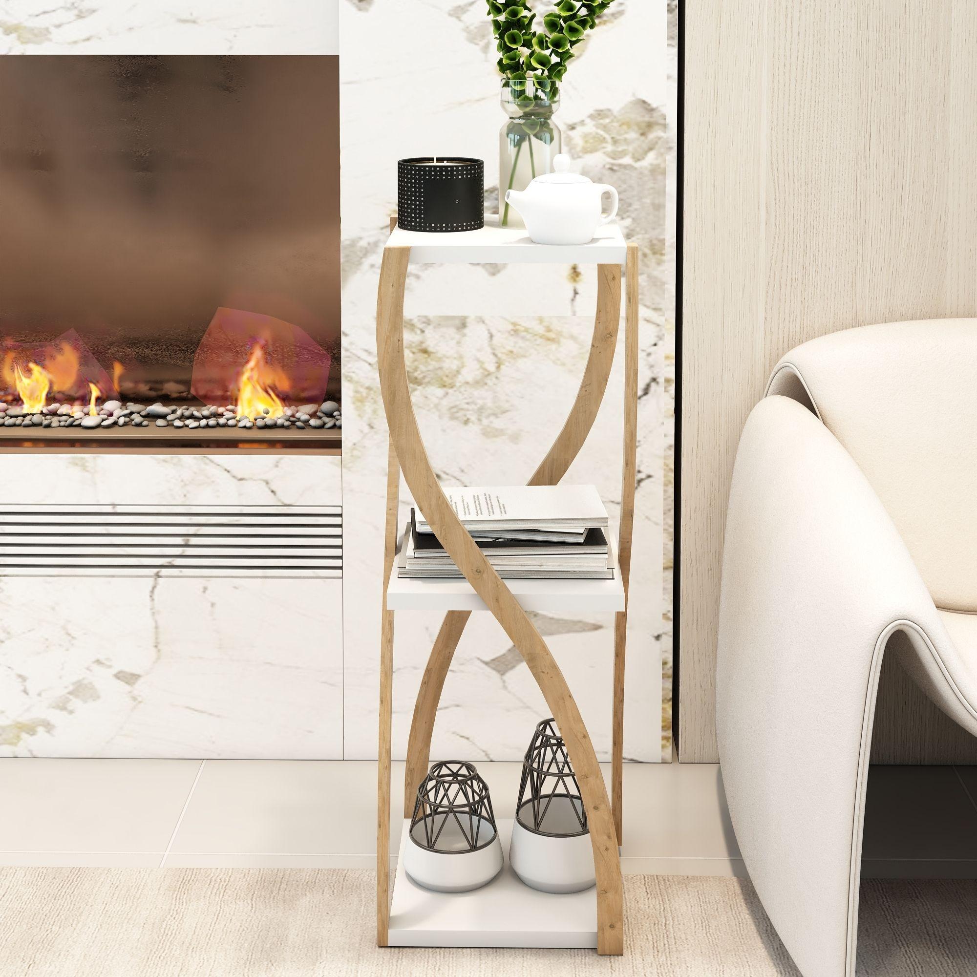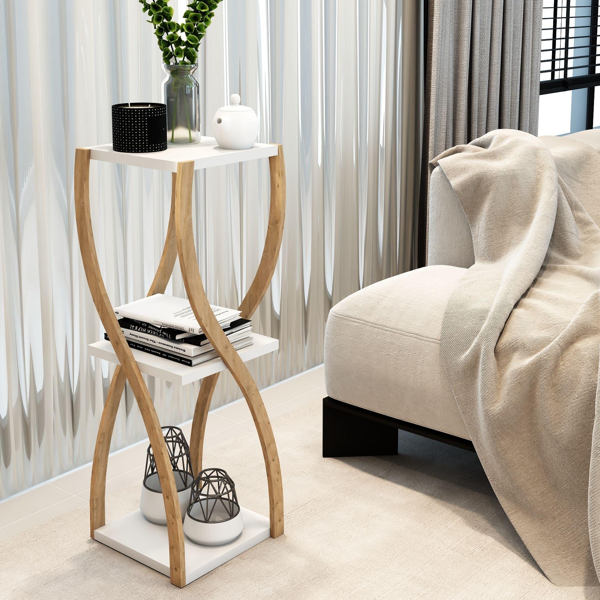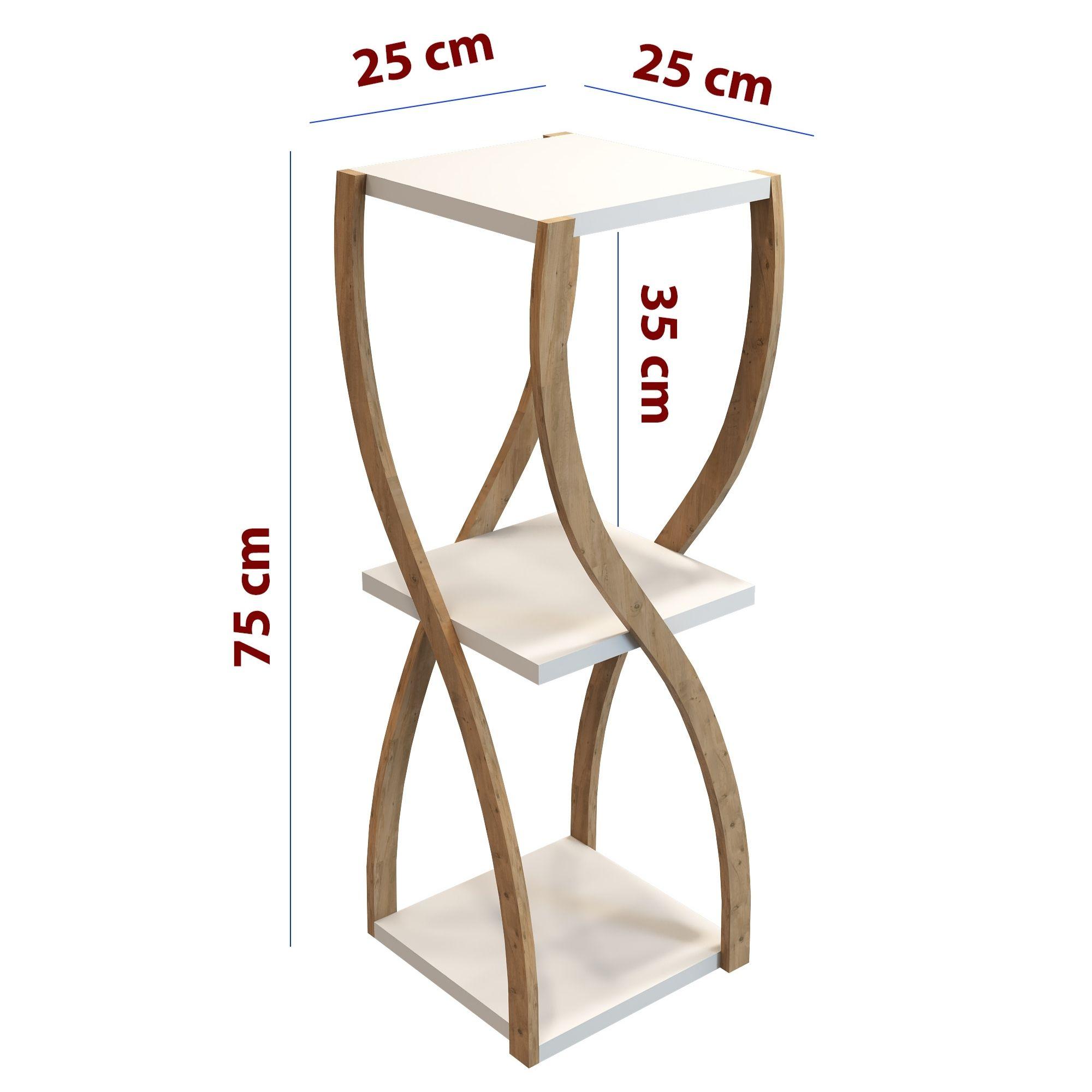 Bukle Beyaz 3 Katlı Ahşap Sehpa / Dekoratif & Çok Amaçlı Kullanım