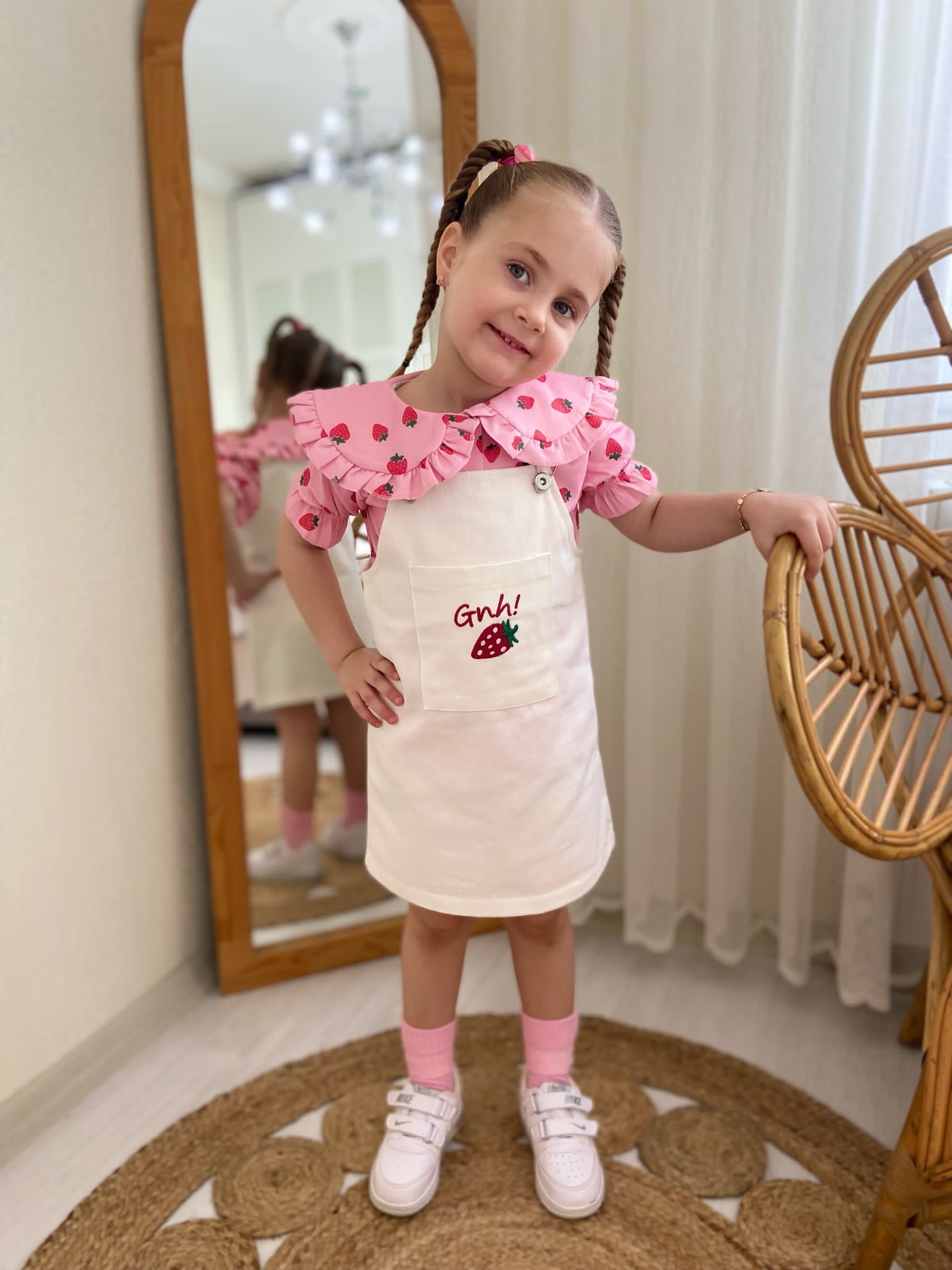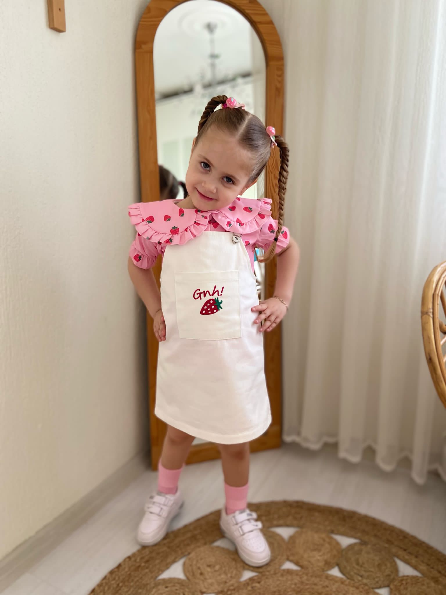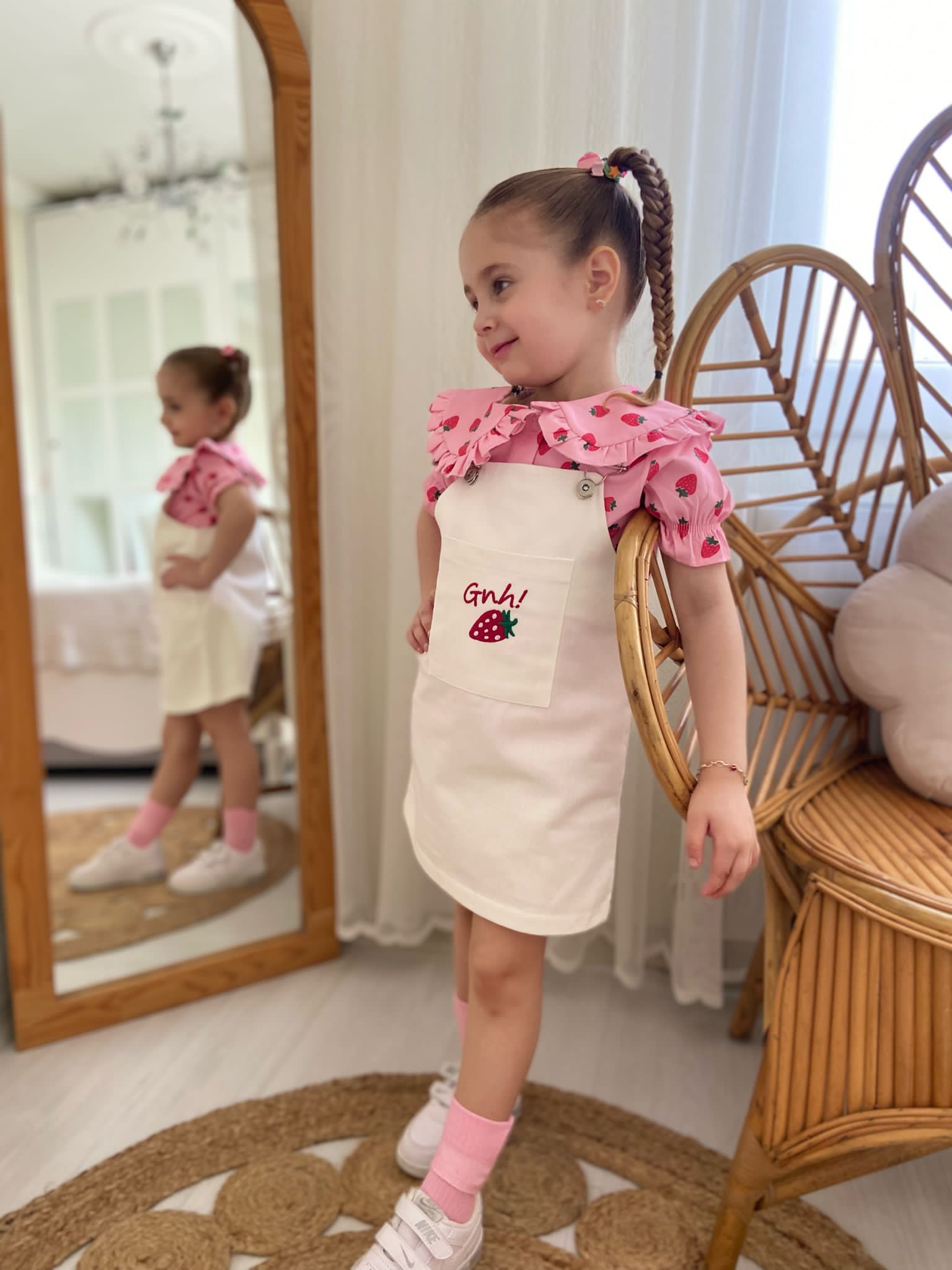 - Gömlek Polin Kumaş: Çilek desenleriyle süslenmiş hafif ve havadar bir kumaştan üretilmiştir.