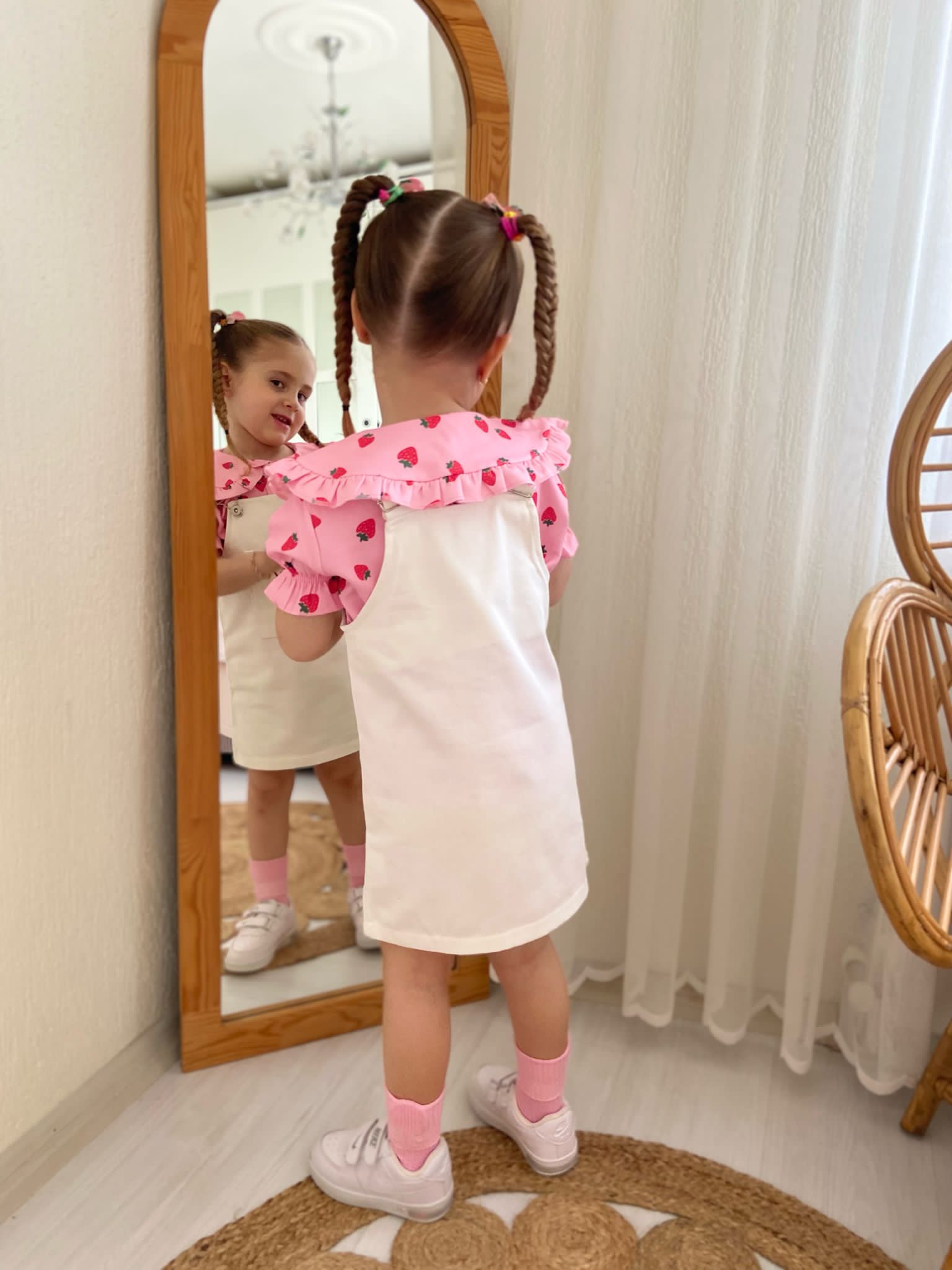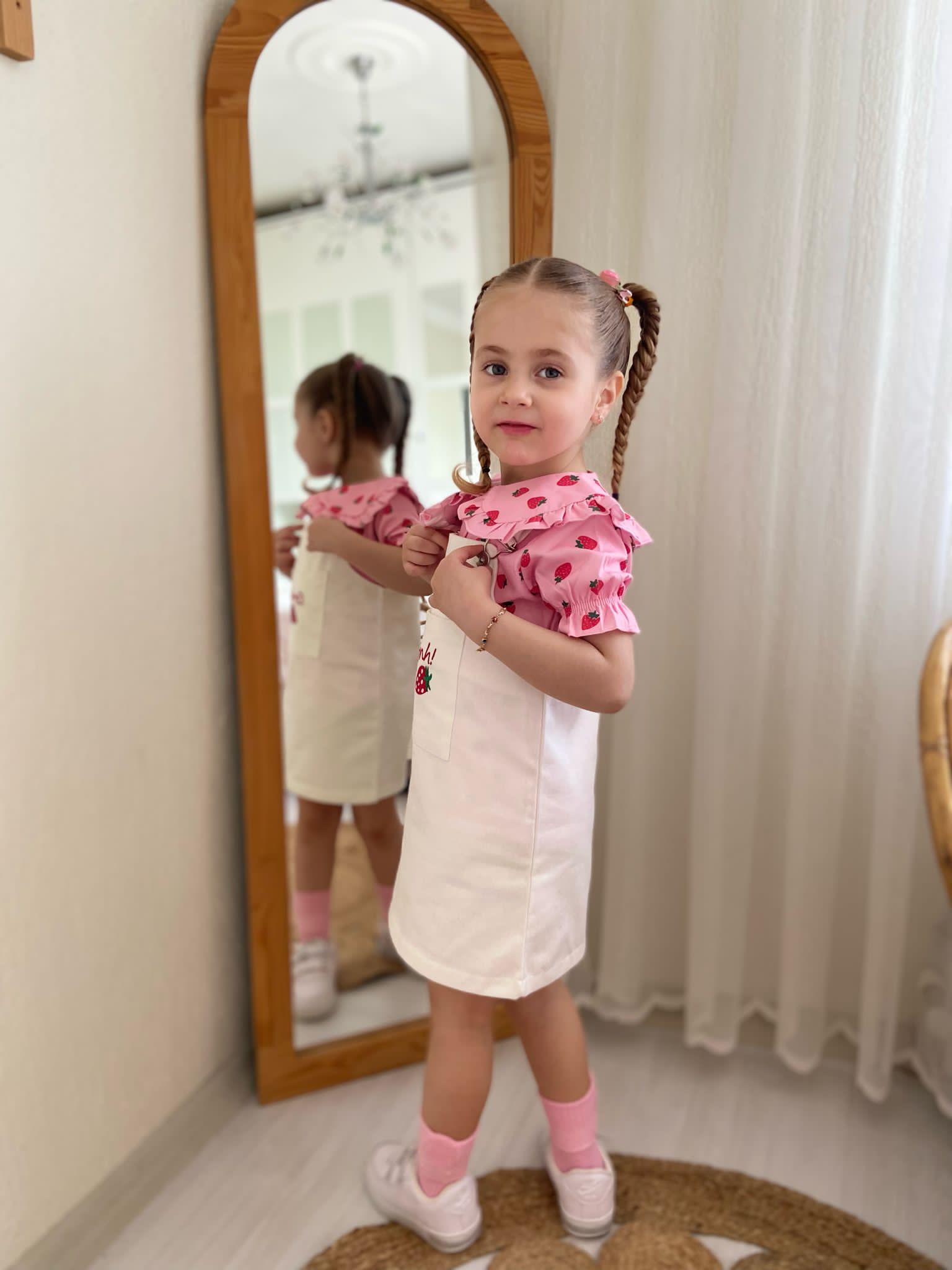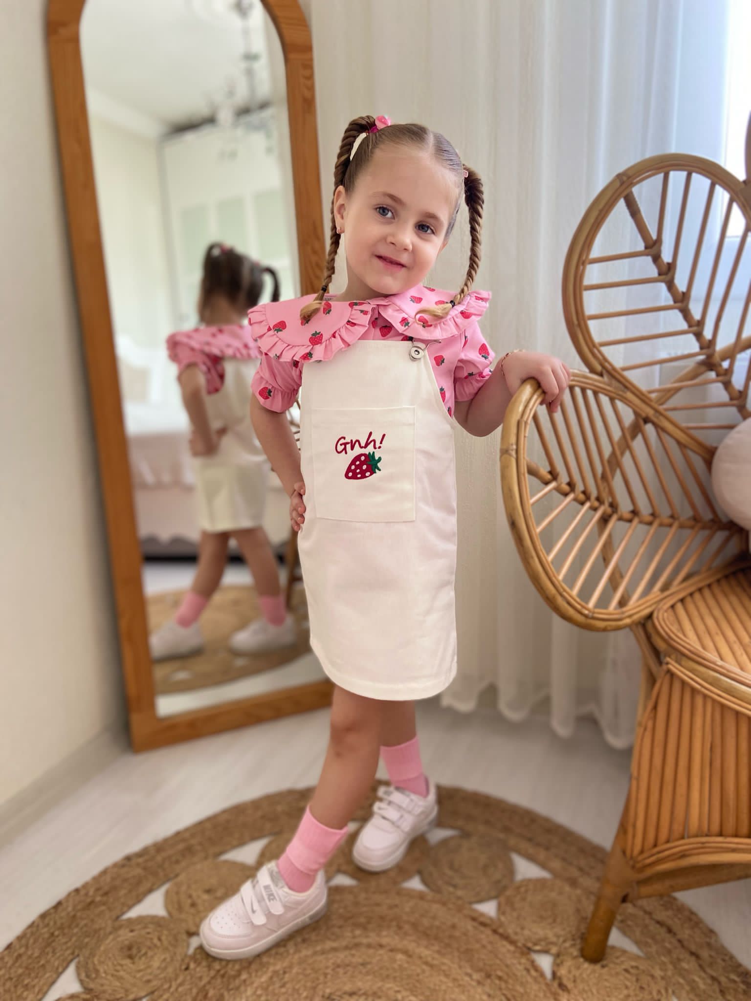 - Gömlek Polin Kumaş: Çilek desenleriyle süslenmiş hafif ve havadar bir kumaştan üretilmiştir.
