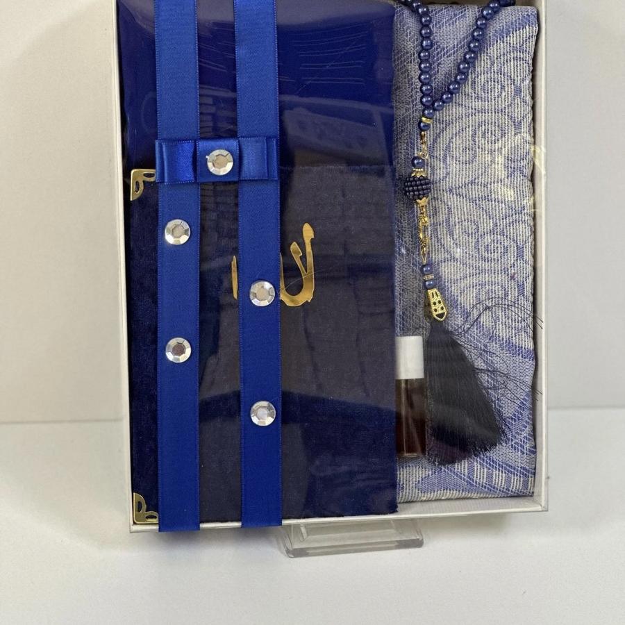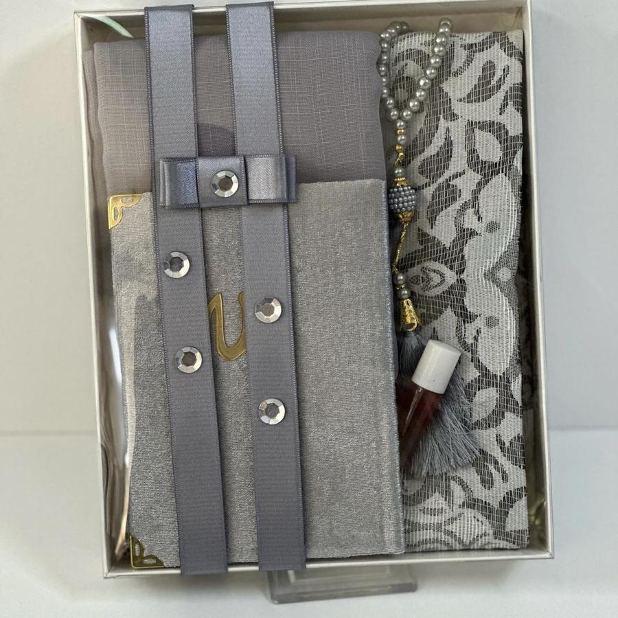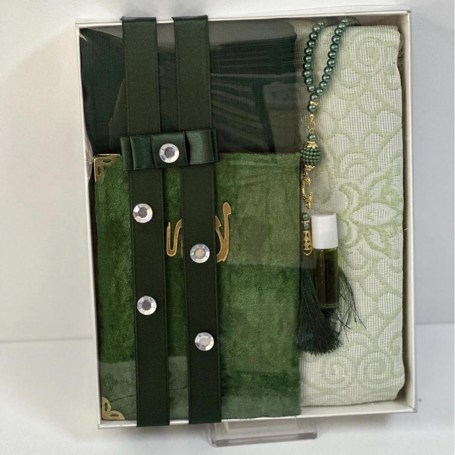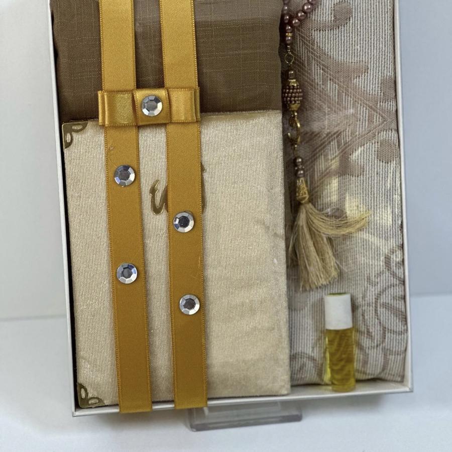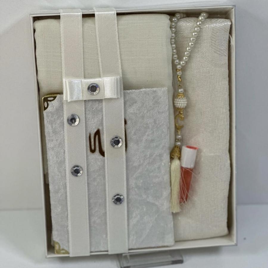 1 adet seccade 1 adet Yasin şerif 1 adet fulamlı yazma 1 adet inci Tesbih 1 adet esans koku ürünler görselde görüldüğü gibi hediye paketinde gelir