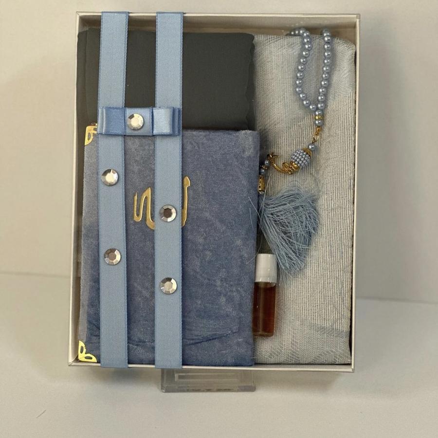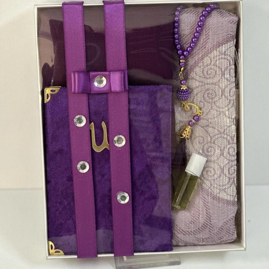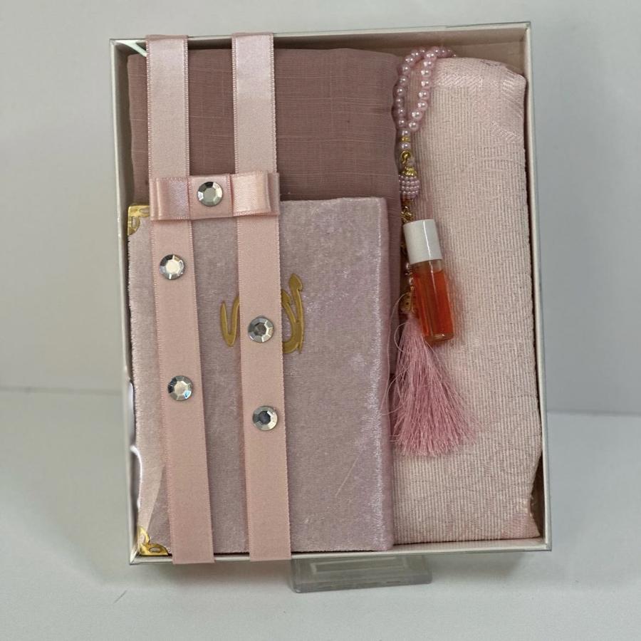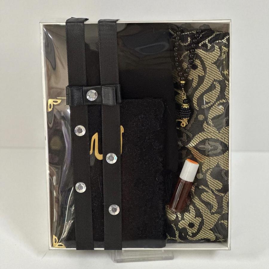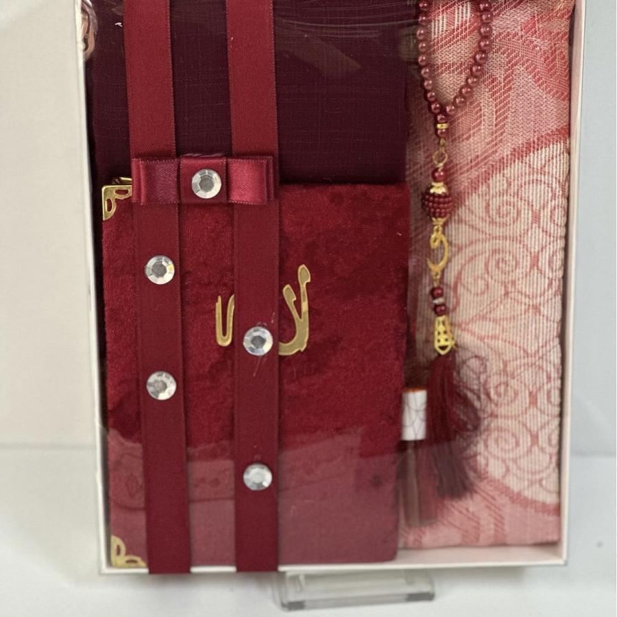 1 adet seccade 1 adet Yasin şerif 1 adet fulamlı yazma 1 adet inci Tesbih 1 adet esans koku ürünler görselde görüldüğü gibi hediye paketinde gelir