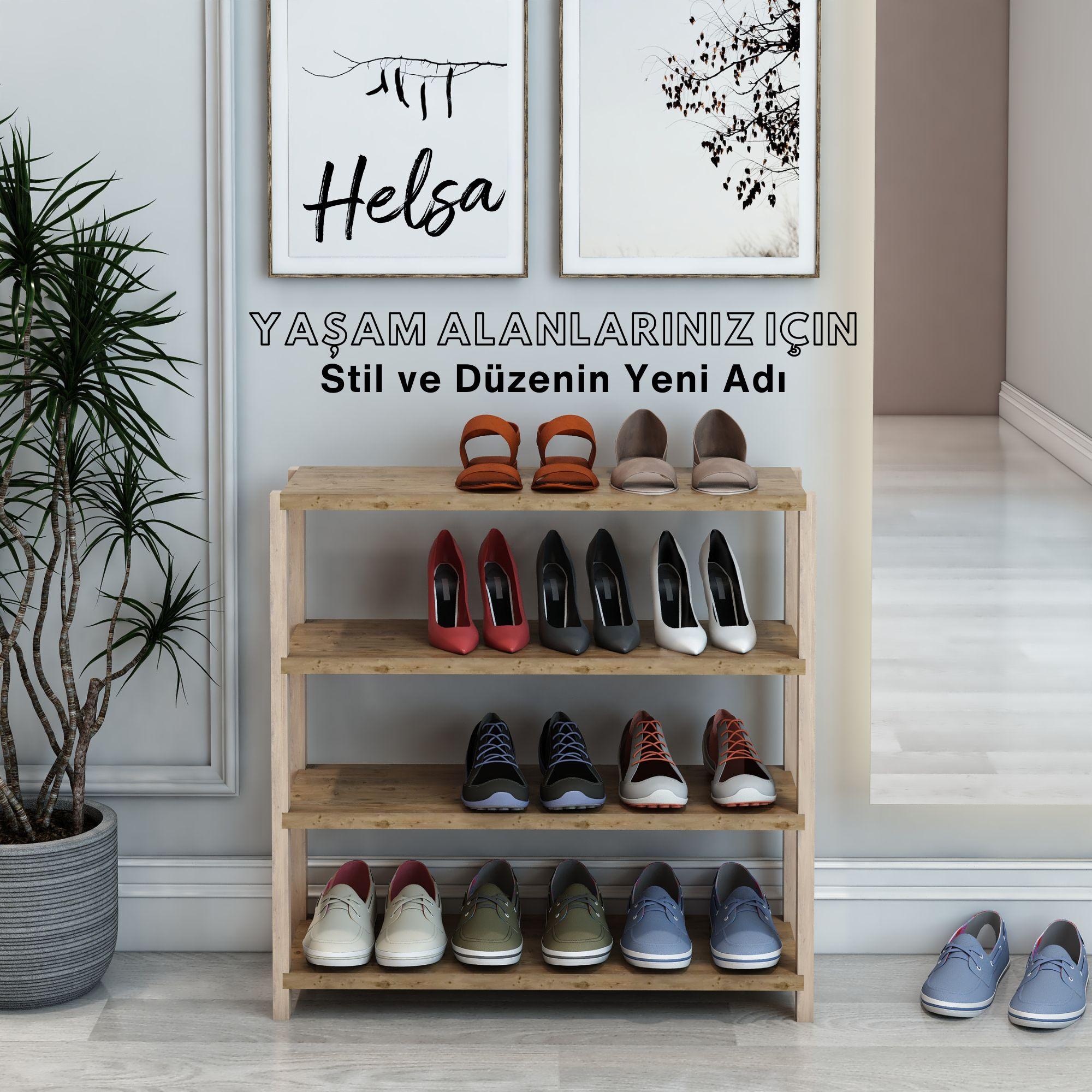 Jest Dekor Konsept Helsa 4 Raflı Ahşap Ayakkabılık, ayakkabılarınızı düzenlemenin yanı sıra, kitaplık, banyo düzenleyici, mutfak rafı ve ofis organizatörü olarak da kullanılabilecek çok amaçlı bir üründür.