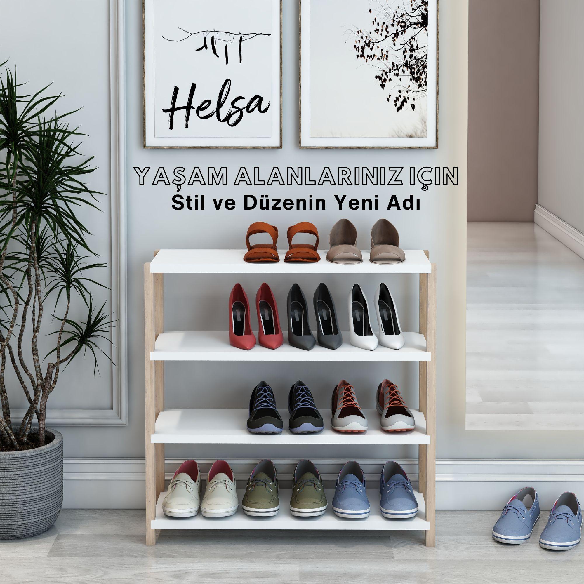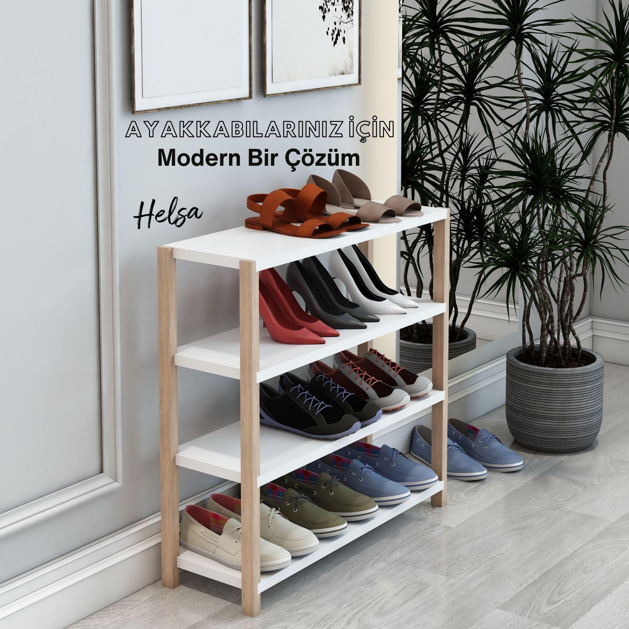 Jest Dekor Konsept Helsa 4 Raflı Ahşap Ayakkabılık, ayakkabılarınızı düzenlemenin yanı sıra, kitaplık, banyo düzenleyici, mutfak rafı ve ofis organizatörü olarak da kullanılabilecek çok amaçlı bir üründür.