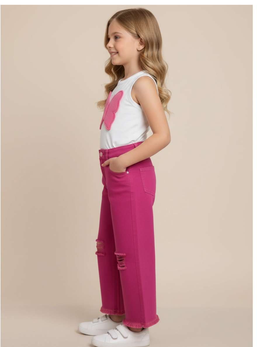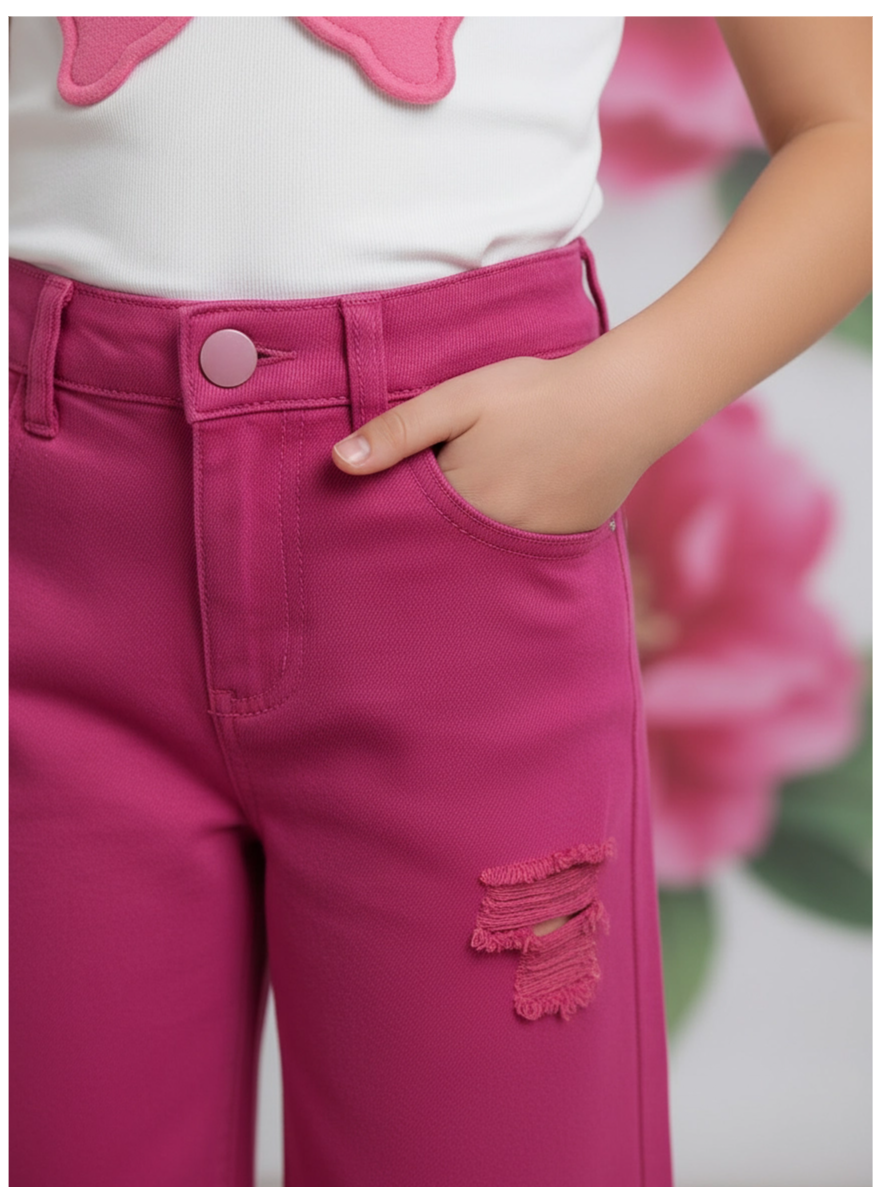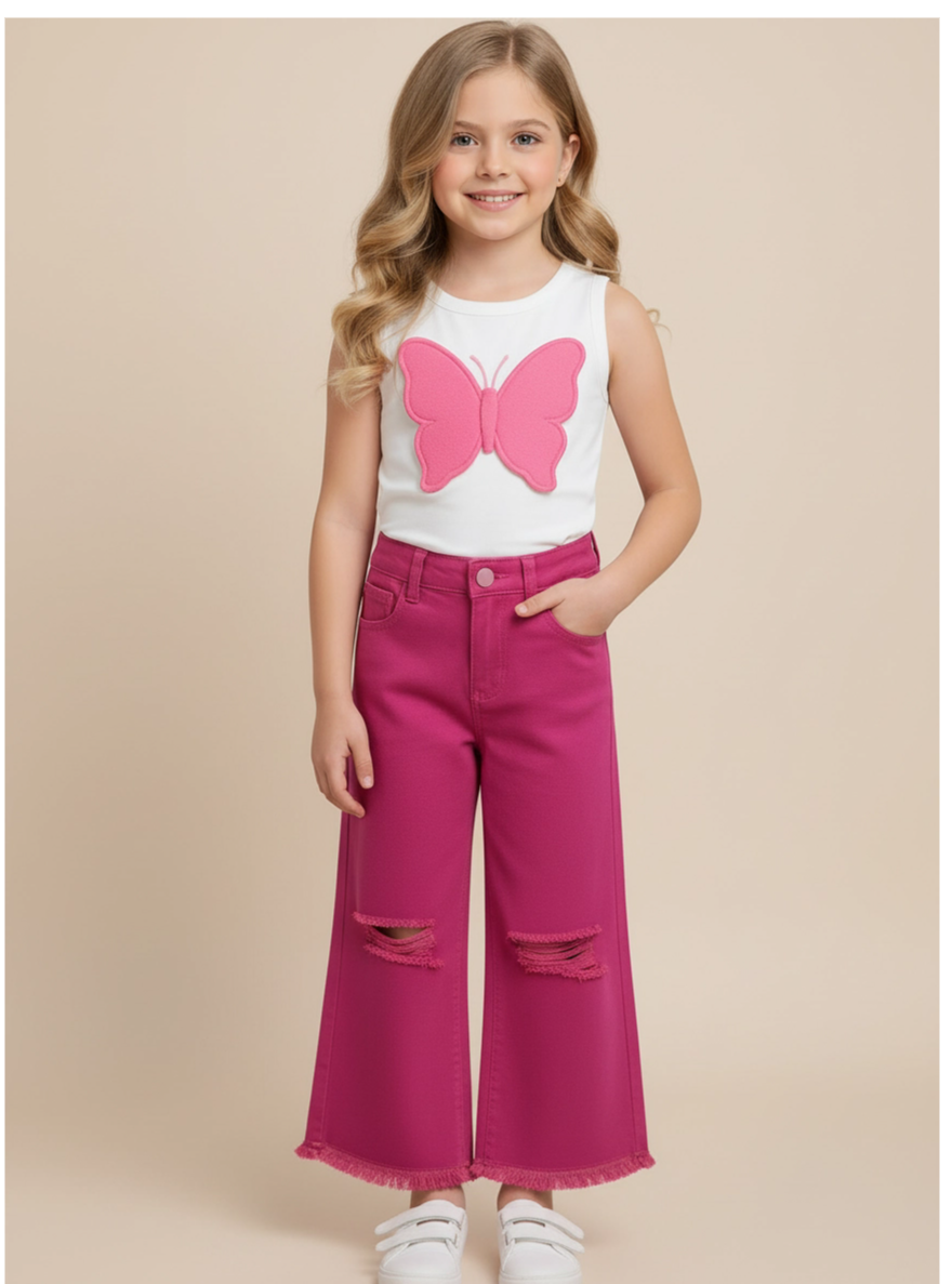 Kelebek Baskılı Pembe Renk Askılı Badi Ve Kot Pantolon Kombin