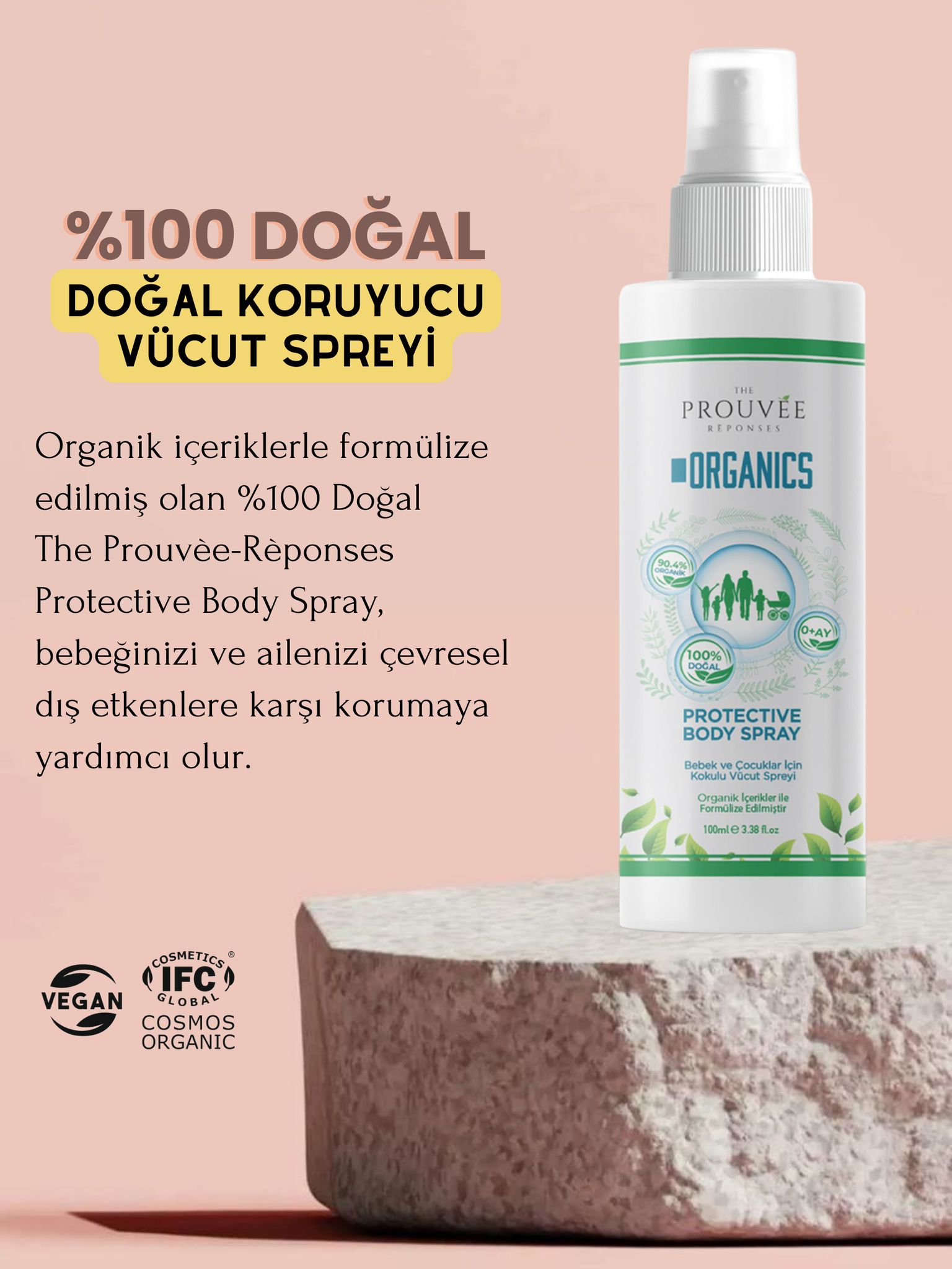 Yaz aylarında, bebek, çocuk ve yetişkinleri oluşabilecek çevresel olumsuzluklara karşı korumaya yardımcı, organik vücut spreyidir. İçeriğindeki değerli yağlar sayesinde hem sizin hem bebeğinizin rahat bir gün ve gece geçirmesini sağlar. Hızlı emilen formülü sayesinde ciltte yapışkanlık hissi bırakmaz. Cildinize canlılık ve parlaklık kazandırırken cildinizi dış etkenlere karşı korur. Yenidoğan’dan itibaren kullanımına uygundur.