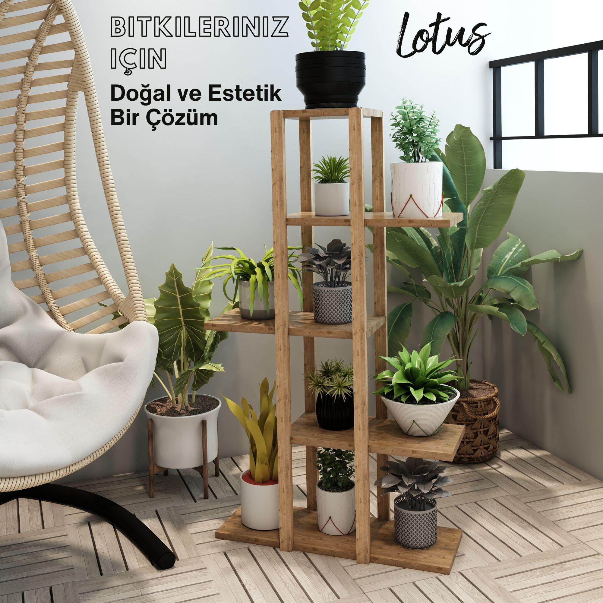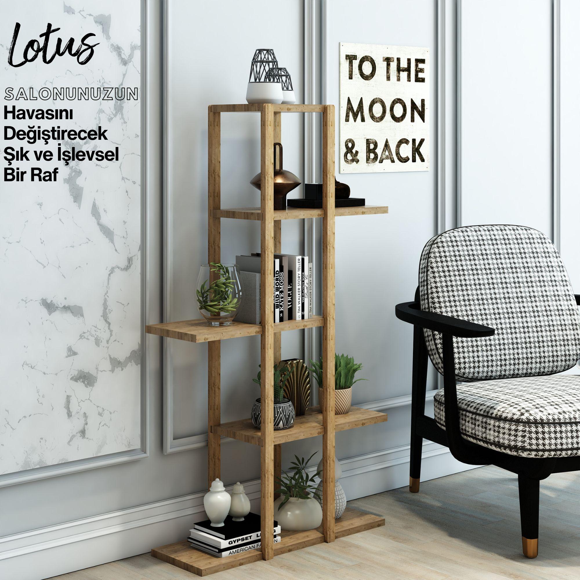Jest Dekor Konsept Lotus Ahşap 5 Katlı Dekoratif Raf, sadece Salon ve Oturma Odasınızda dekoratif eşyalarınızı sergilemek için değil, ofisinizde kitaplarınızı yada ofis malzemelerinizi düzenleyebileceğiniz, aynı zamanda Banyo Organizeri, Bitkileriniz için Saksılık ve Mutfak Rafı olarak da kullanılabilecek çok amaçlı bir üründür.