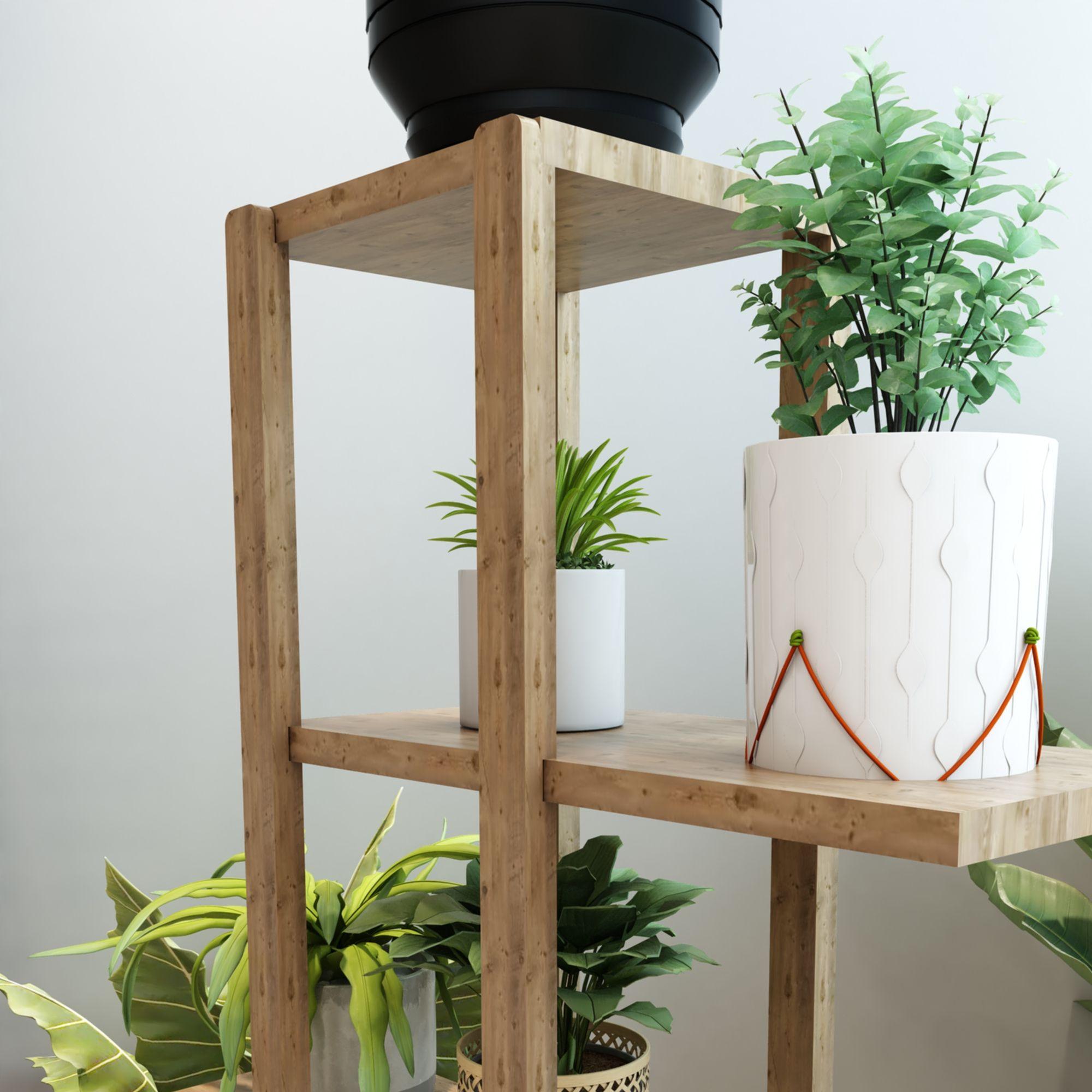 Lotus Ahşap 5 Katlı Dekoratif Raf / Çok Amaçlı Kullanım / Şık ve Ergonomik / Demonte ve Kolay Kurulum