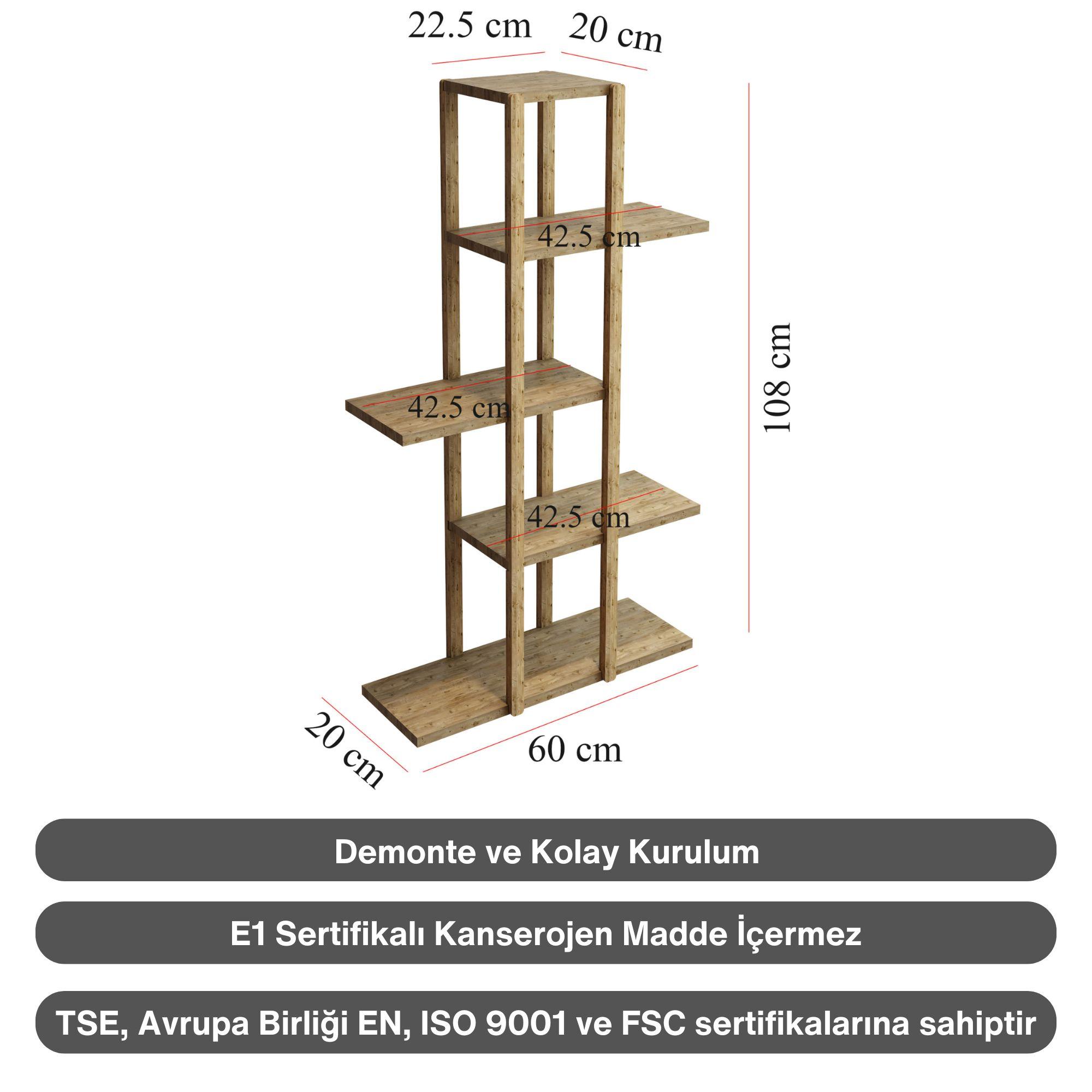 Lotus Ahşap 5 Katlı Dekoratif Raf / Çok Amaçlı Kullanım / Şık ve Ergonomik / Demonte ve Kolay Kurulum