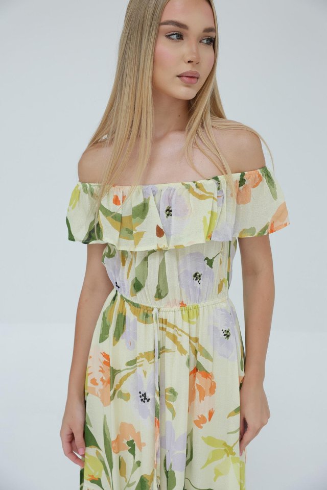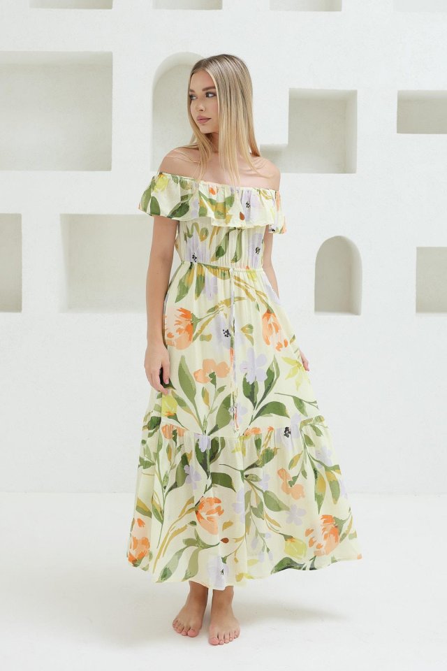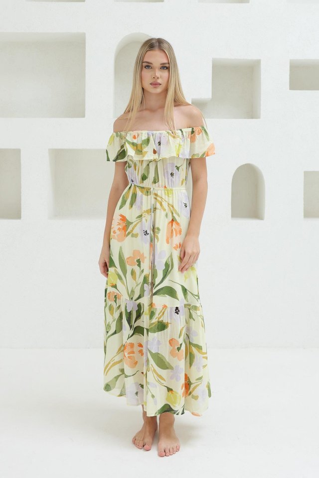 Madonna Yaka Elbise - Yeşil - Ekru