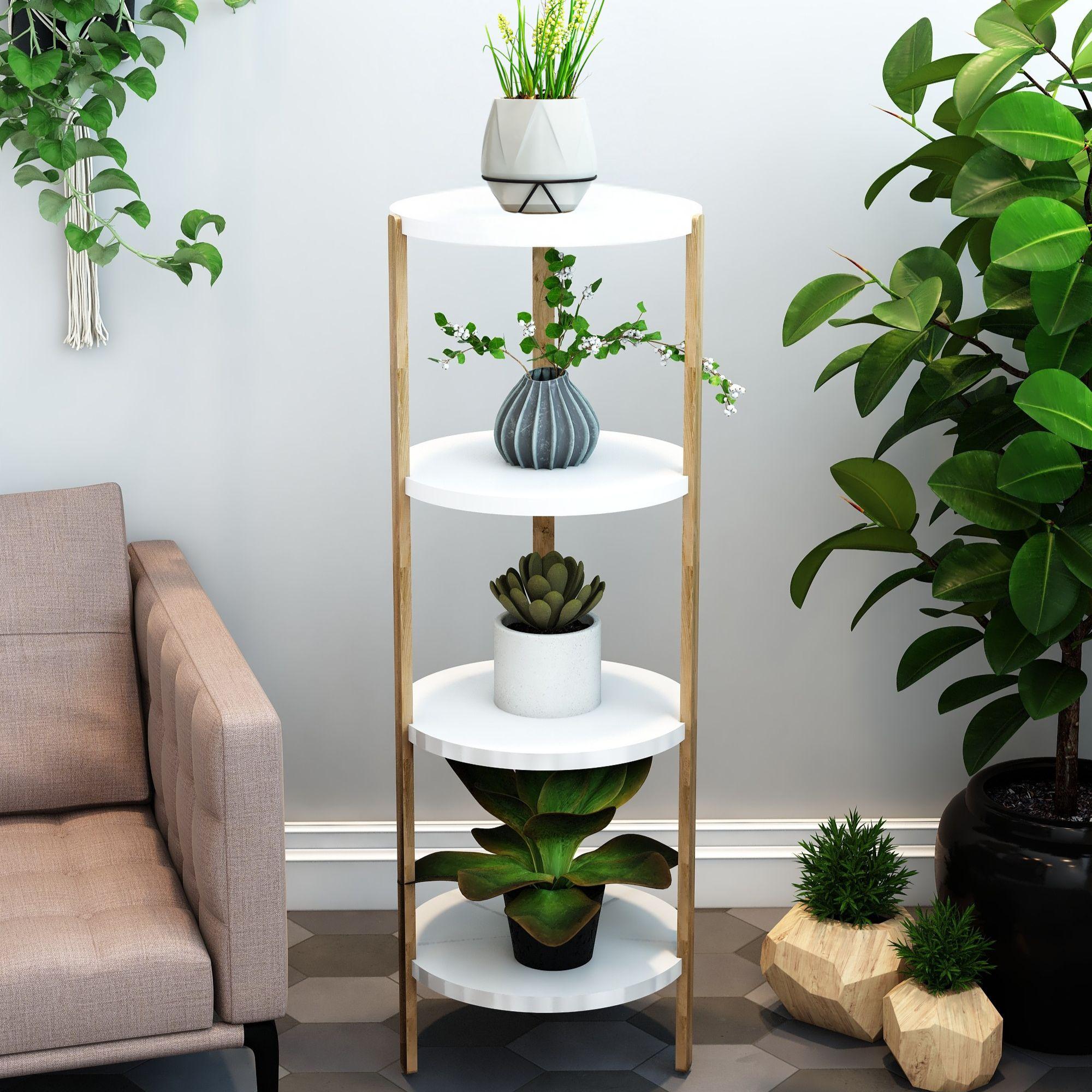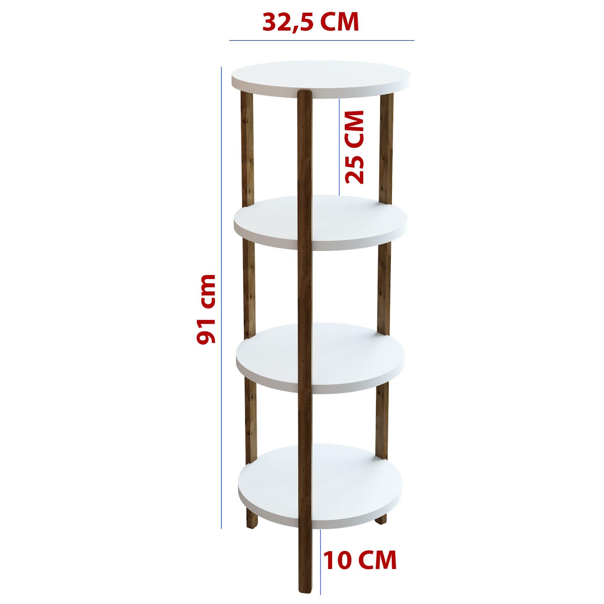 Miray Beyaz 4 Katlı Yuvarlak Ahşap Çok Amaçlı Sehpa / Saksılık-Çiçeklik / Dekoratif Raf / Yüksek Kalite, Şık Tasarım