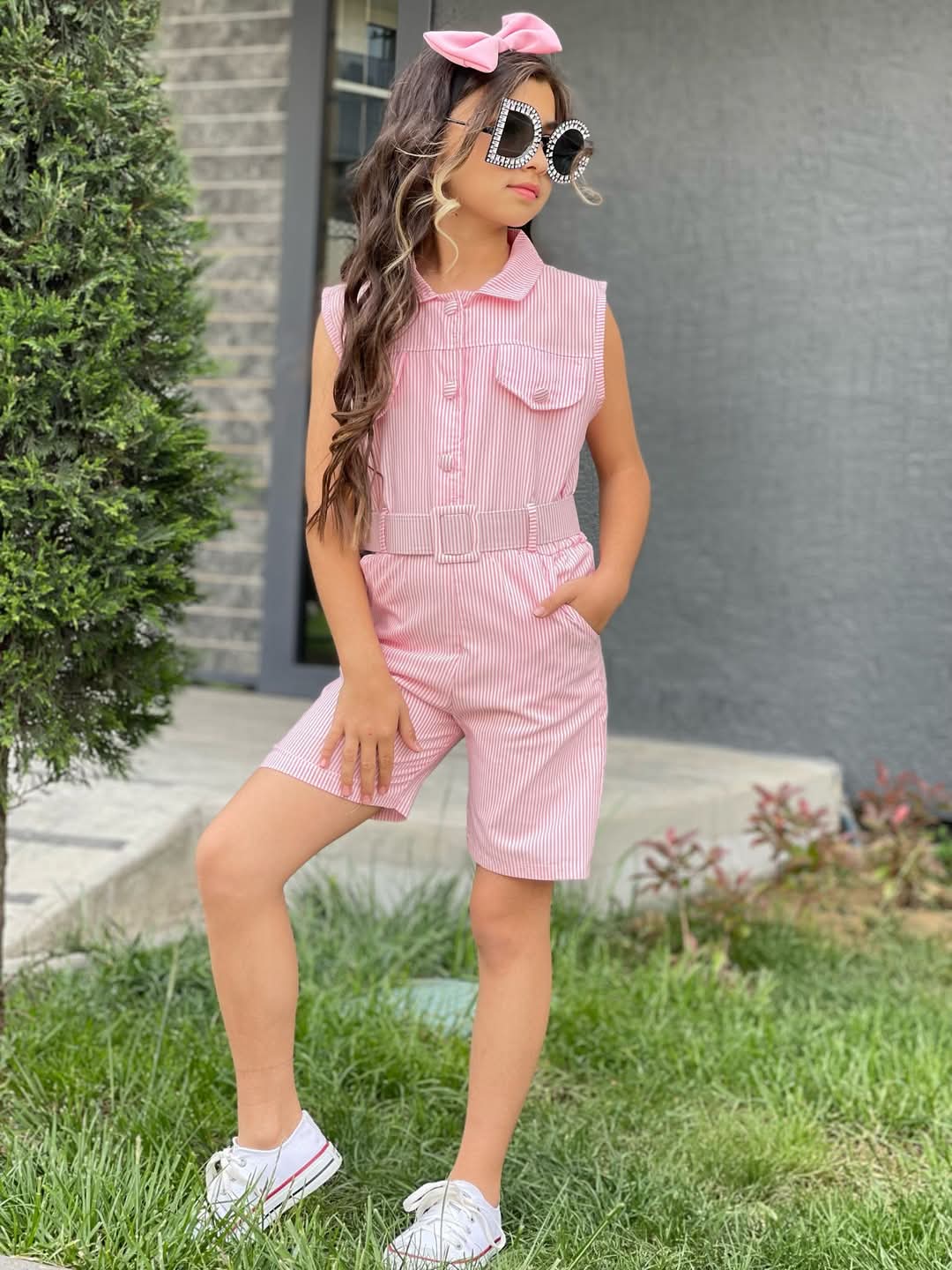 Tarzınıza şıklık katacak Pembe Renk Kemerli Toka Hediyeli Kısa Tulum Kombin, yaz aylarının sıcak günlerinde hem rahat hem de şık bir görünüm elde etmenizi sağlıyor. Kısa tulum, hafif dokusu ve modern tasarımıyla dikkat çekerken, pembe rengiyle de genç ve enerjik bir hava yaratıyor.