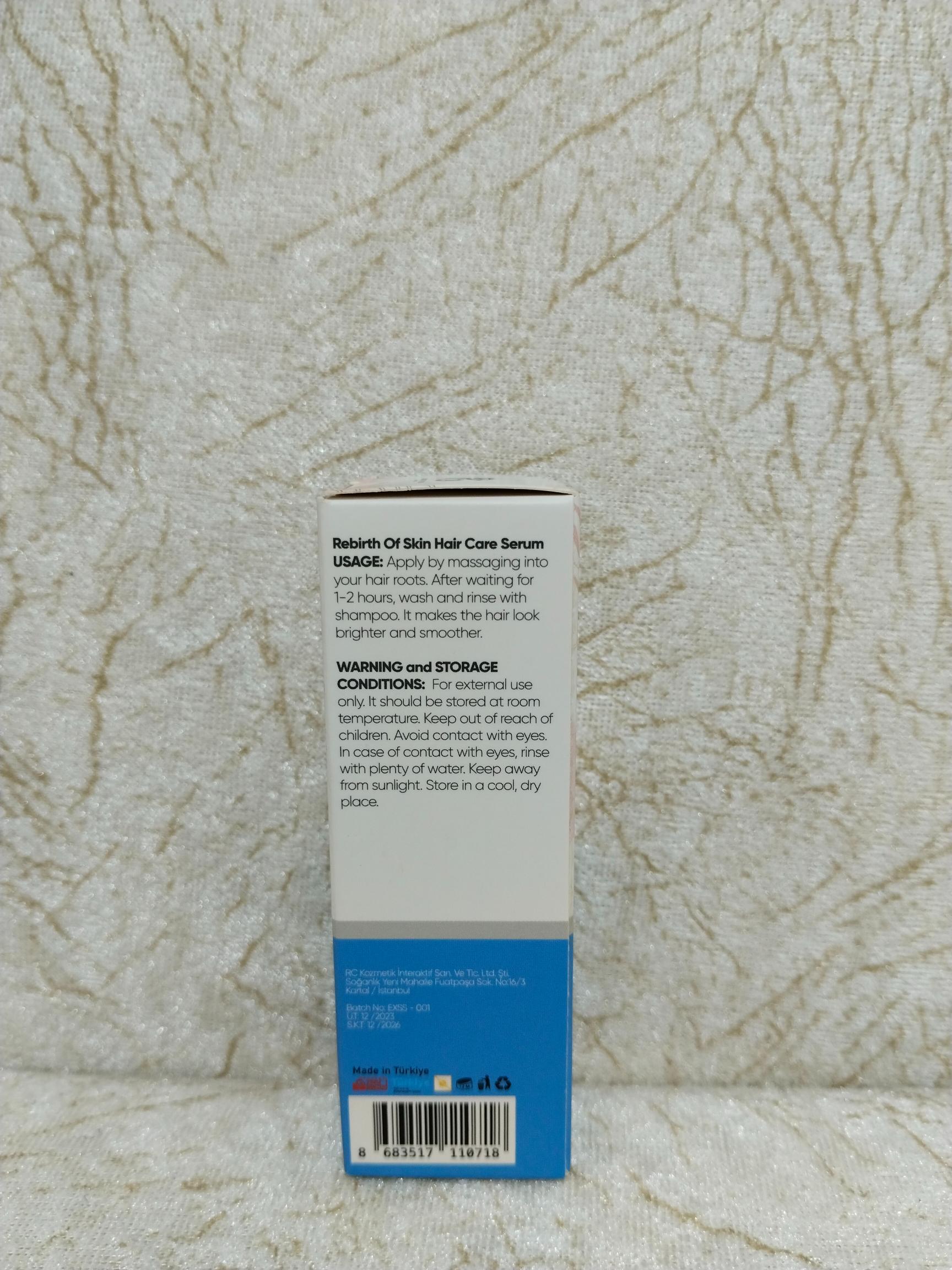 Doğal ve etkili içerikleriyle saç bakımında devrim yaratan Rebirth Of Skin Saç Bakım Serumu, saçlarınıza hak ettiği şefkati ve bakımı sunar. Eğer siz de saç dökülmesi yaşıyor veya saç sağlığınızı korumak istiyorsanız, bu serum tam size göre. Her gün yeni bir başlangıç yapmanın; sağlıklı ve güçlü saçlarla mümkün olduğunu unutmayın.