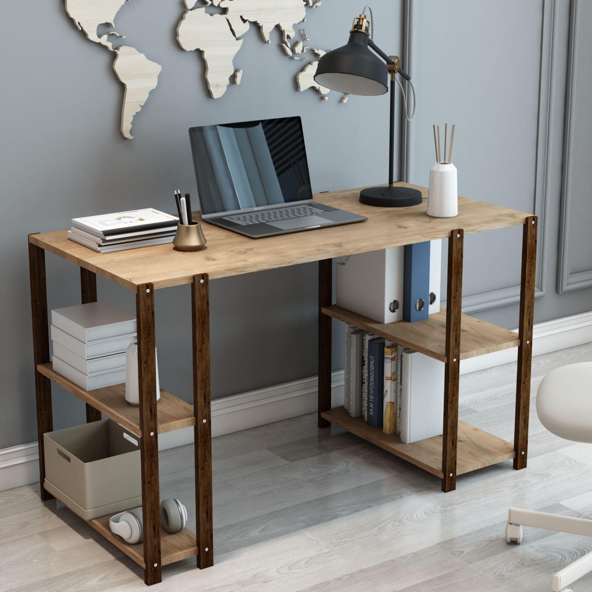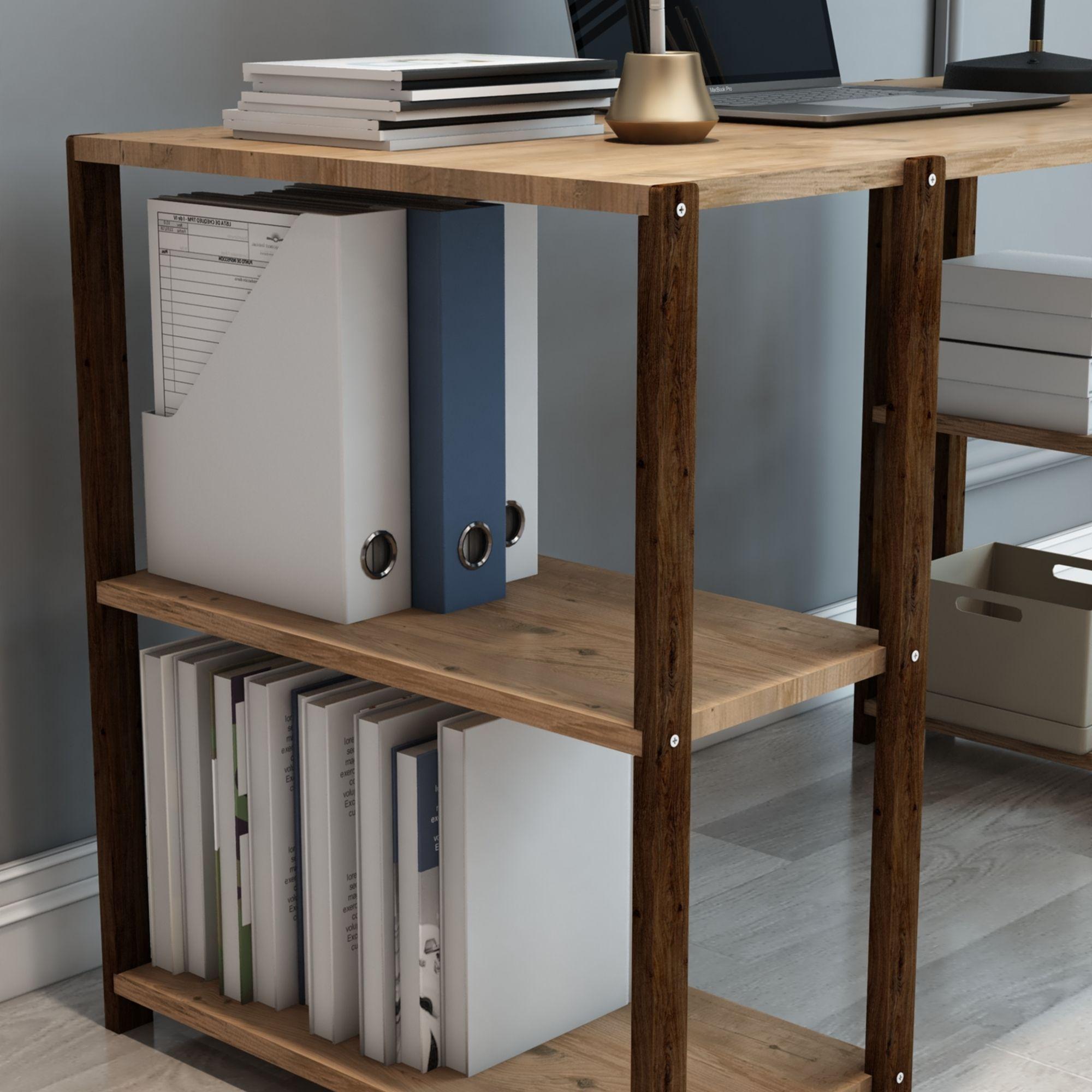 4 Raflı Ahşap Kitaplıklı Çalışma, Ders, Bilgisayar Masası - Demonte, Ergonomik Tasarım ve Çift Yönlü Kullanım