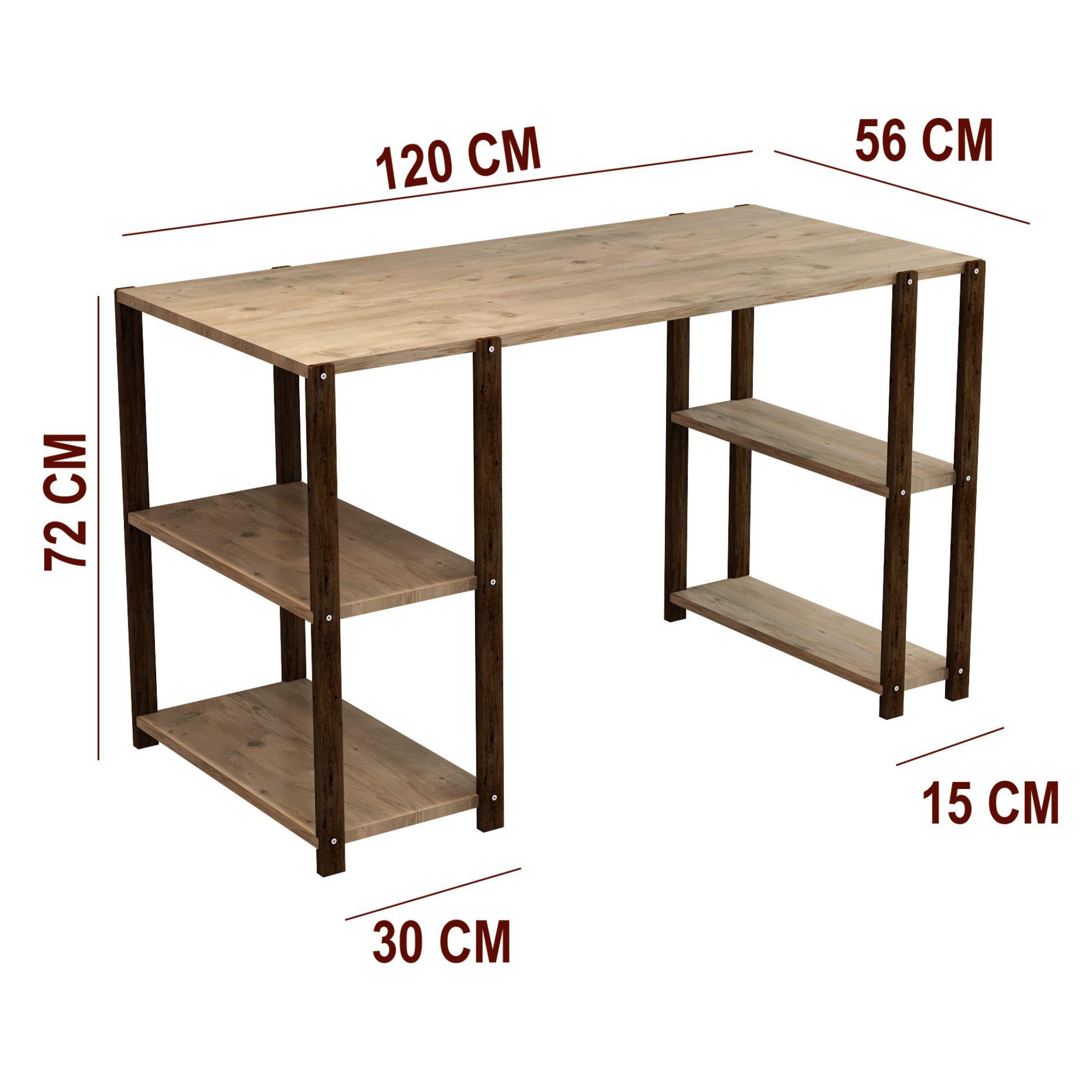 Jest Dekor Konsept 4 raflı ahşap çalışma masası, ofis ve ev kullanımına uygun, ergonomik ve estetik bir çözümdür. Yüzeyinde kullanılan 18mm kalınlığında 1. kalite yonga levha, masif ahşap ayaklarla birleşerek mekanlarınıza doğallık ve sıcaklık katar.