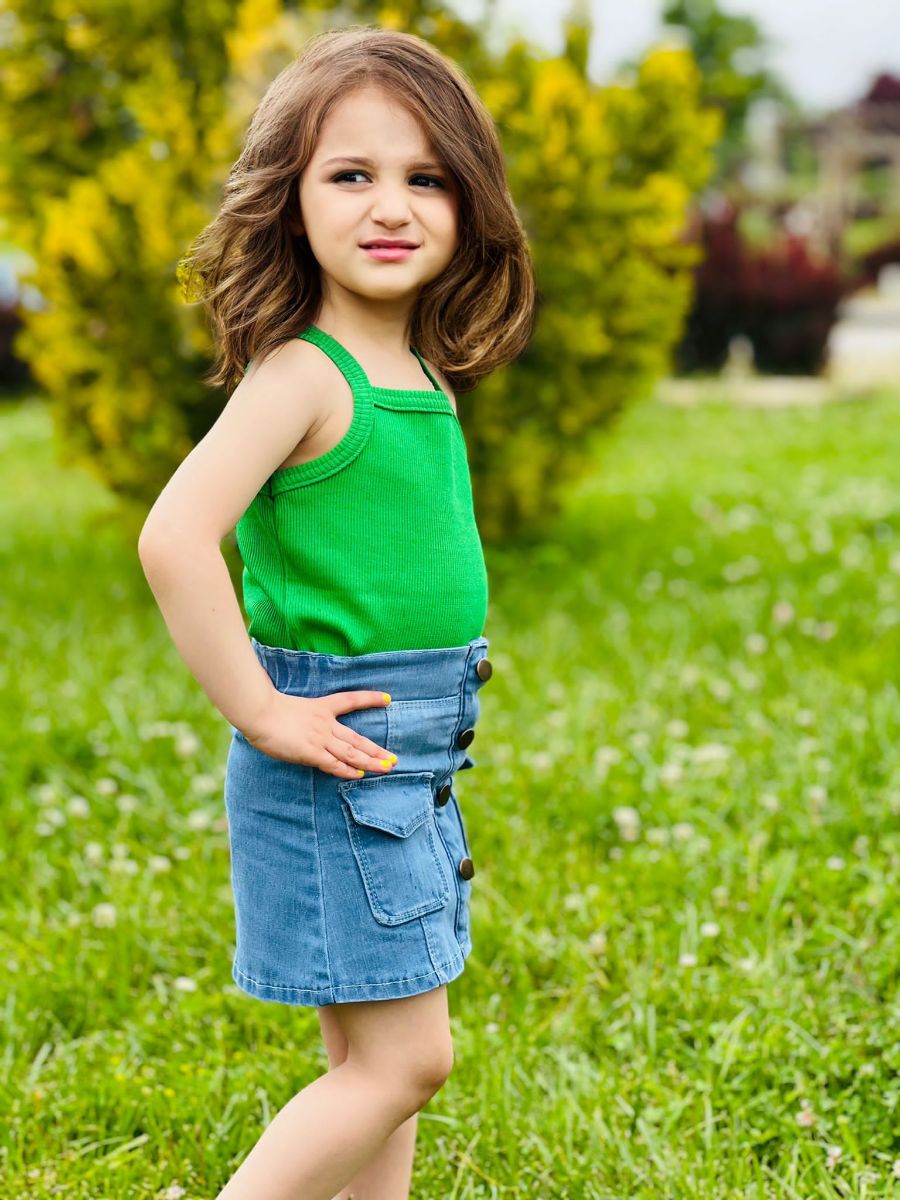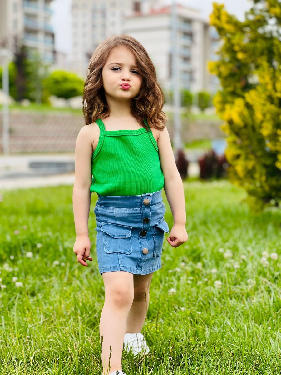 Çocuk modasında şıklık ve konforu bir araya getiren Yeşil Renk Kız Çocuk Askı Badili Kot Etek Takımı, minik bayanların gardıroplarına neşe katmak için tasarlandı. Genel olarak günlük kullanıma uygun olan bu takım, hem yaz hem de sonbahar aylarında rahatlıkla giyilebilecek hafif ama dayanıklı bir yapıya sahiptir.