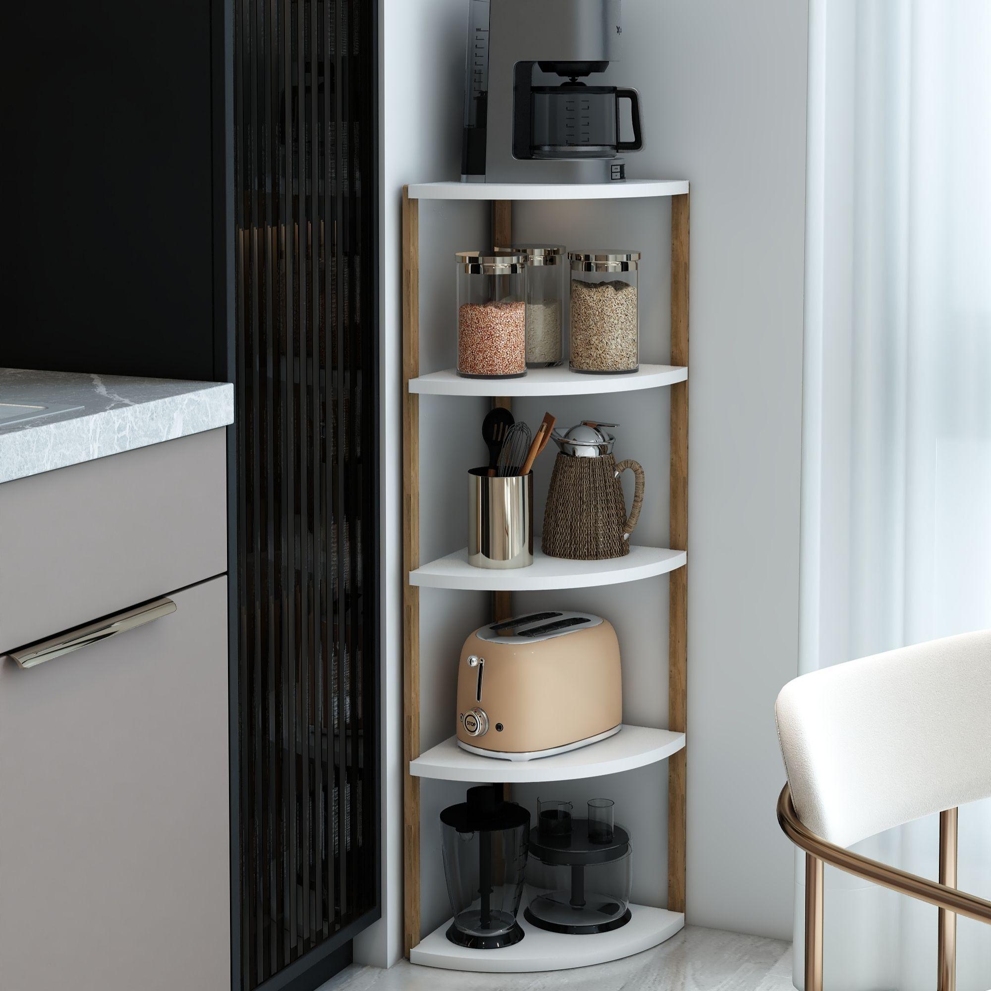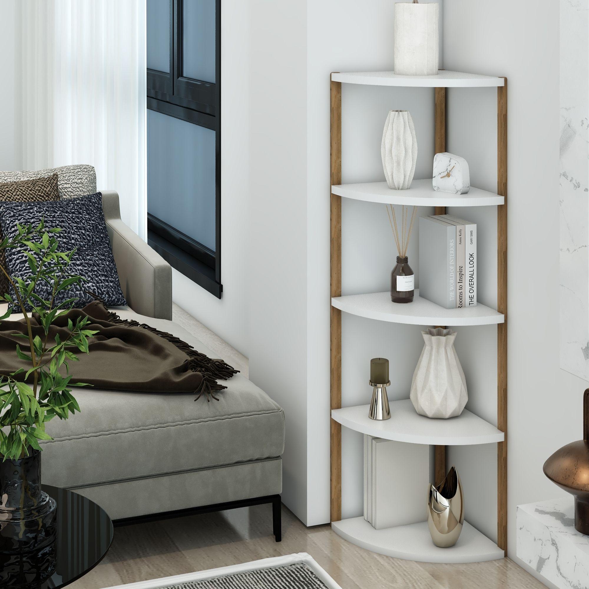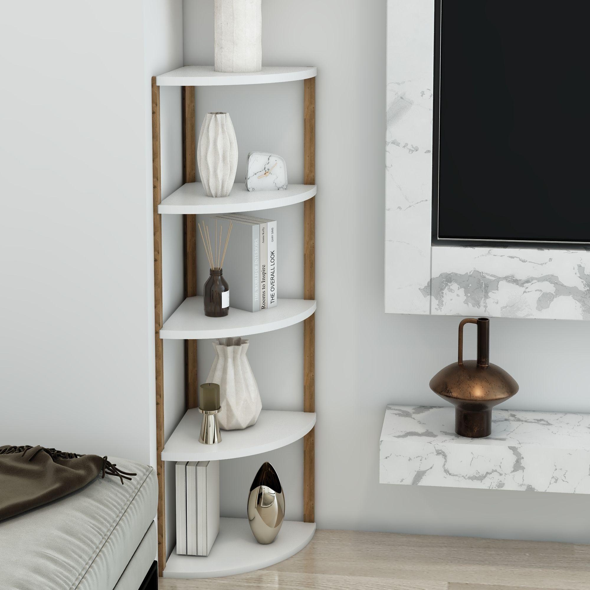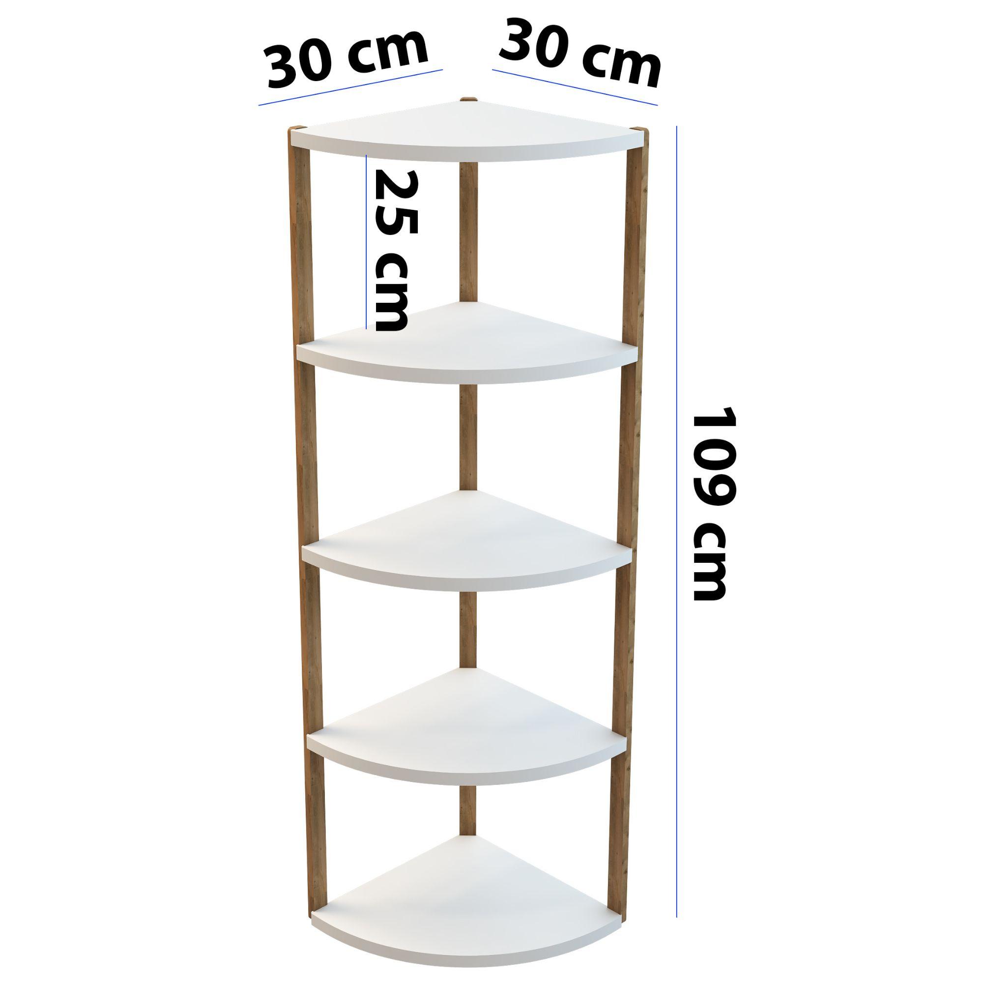 Jest Dekor Konsept Zümrüt 5 Raflı Üçgen Çok Amaçlı Ahşap Sehpa, hem fonksiyonel hem de estetik tasarımıyla evin her köşesinde kullanabileceğiniz çok yönlü bir üründür. Yüksekliği 109 cm, genişliği 30 cm olan bu sehpa, zarif yuvarlak rafları ve 25 cm aralıkları sayesinde çeşitli dekoratif eşyaları sergilemek için veya işlevsel kullanım seçenekleri sunuyor.