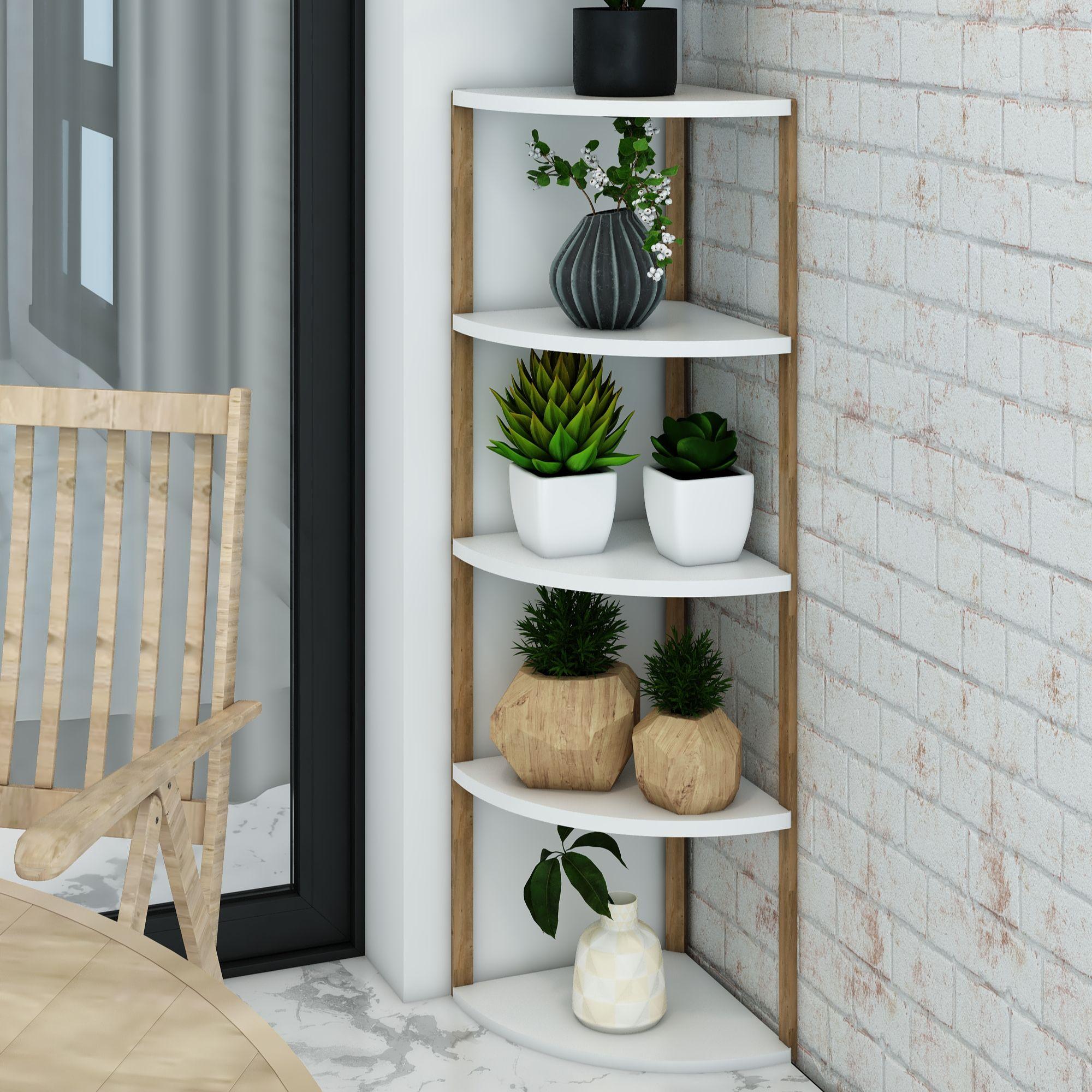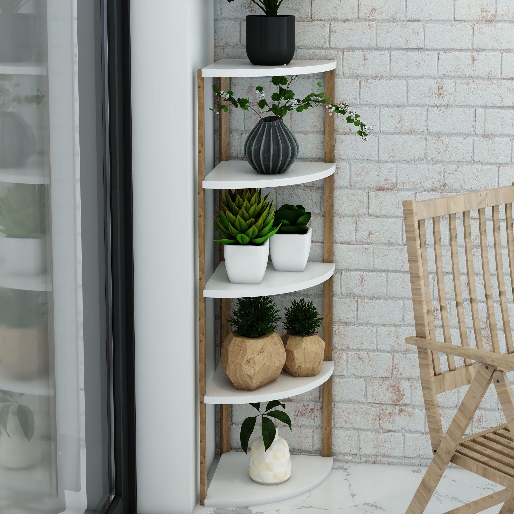 Zümrüt Beyaz 5 Katlı Üçgen Ahşap Çok Amaçlı Sehpa / Saksılık-Çiçeklik / Dekoratif Raf / Yüksek Kalite, Şık Tasarım
